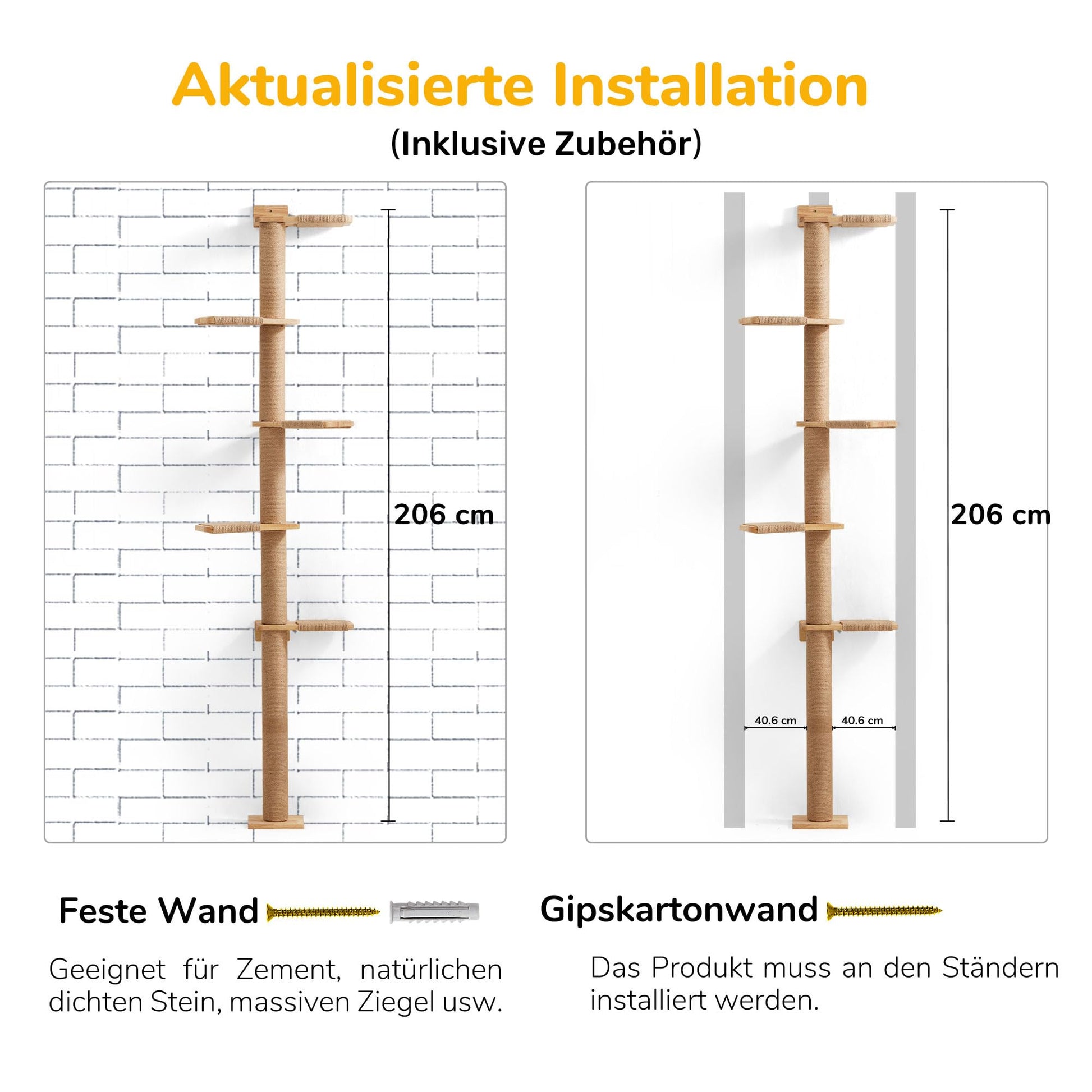 FUKUMARU Kratzbaum Deckenhoch Wandmontage – 206cm Gummibaumholz