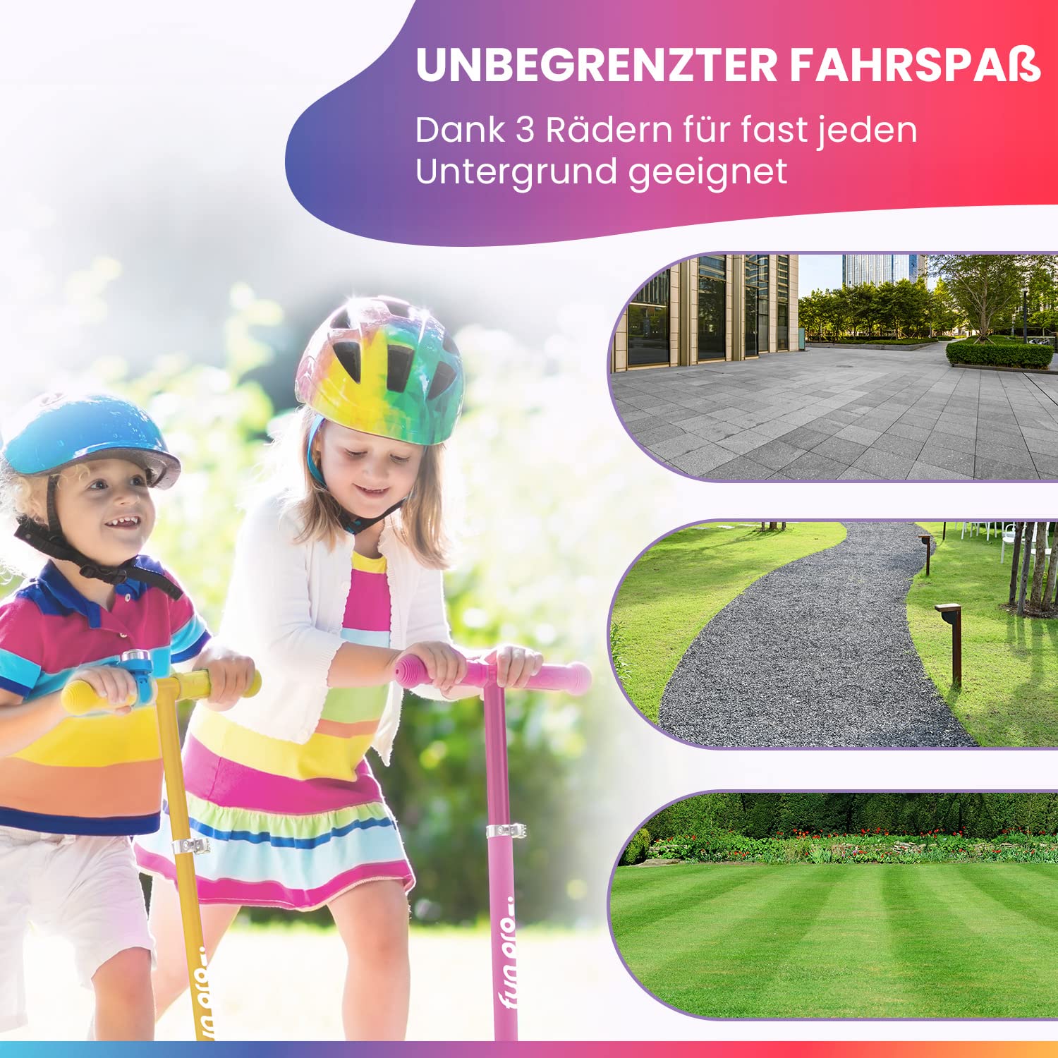 Fun Pro ONE Roller, der Sichere Premium Roller Kinder ab 3 Jahre, LED Räder, faltbar, ab Kleinkind Junge Mädchen, Kinderroller, 3 4 5 6 Jahre