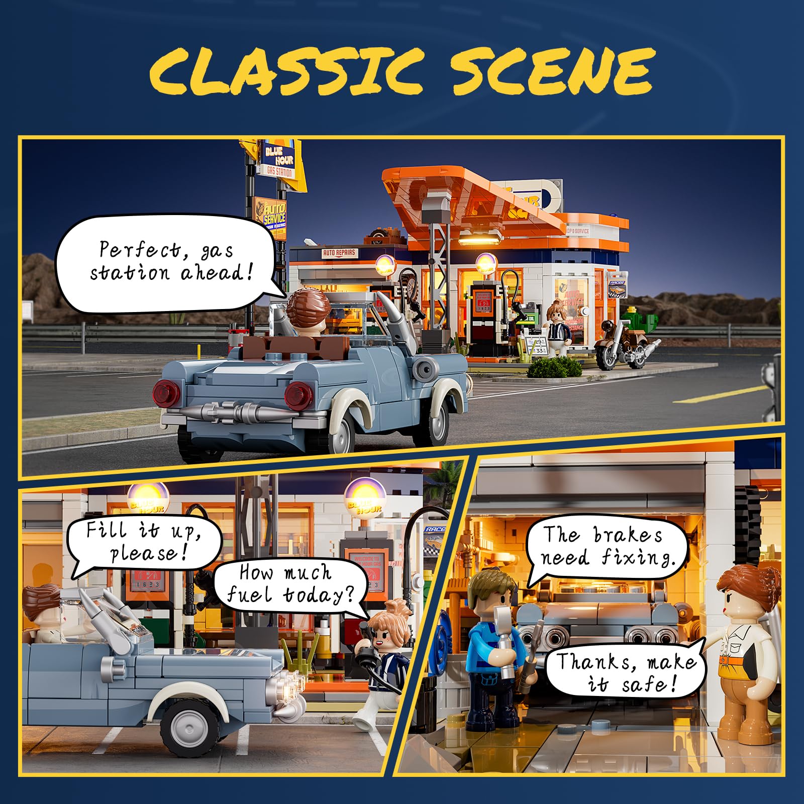 FUNWHOLE City Gas Station Bauset mit Licht – 1608 PCS