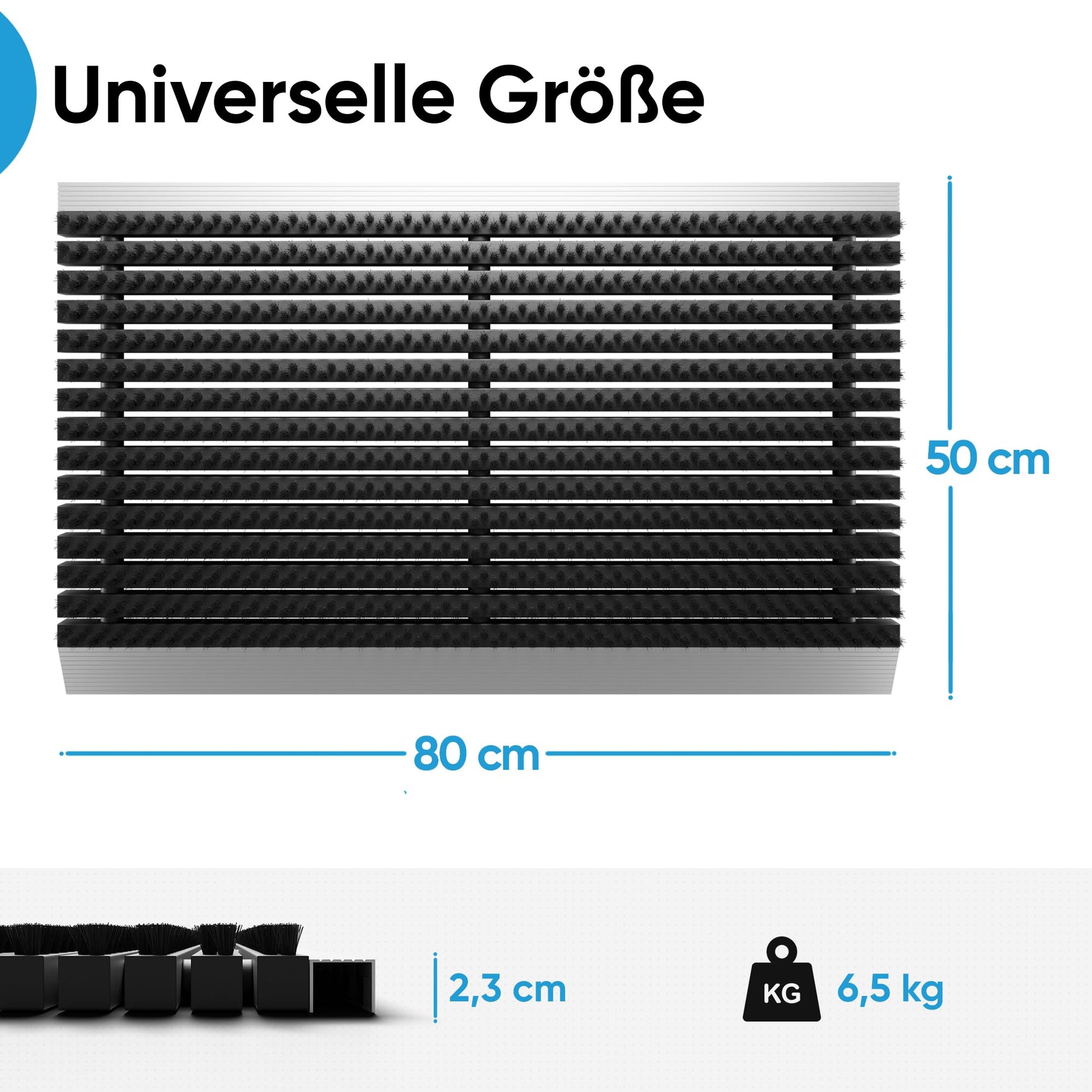- Hochwertige Konstruktion: Ein stabiler Rahmen aus Aluminium fasst die widerstandsfähigen Nylonbürstenreihen ein und sorgt für eine moderne Optik und Langlebigkeit.