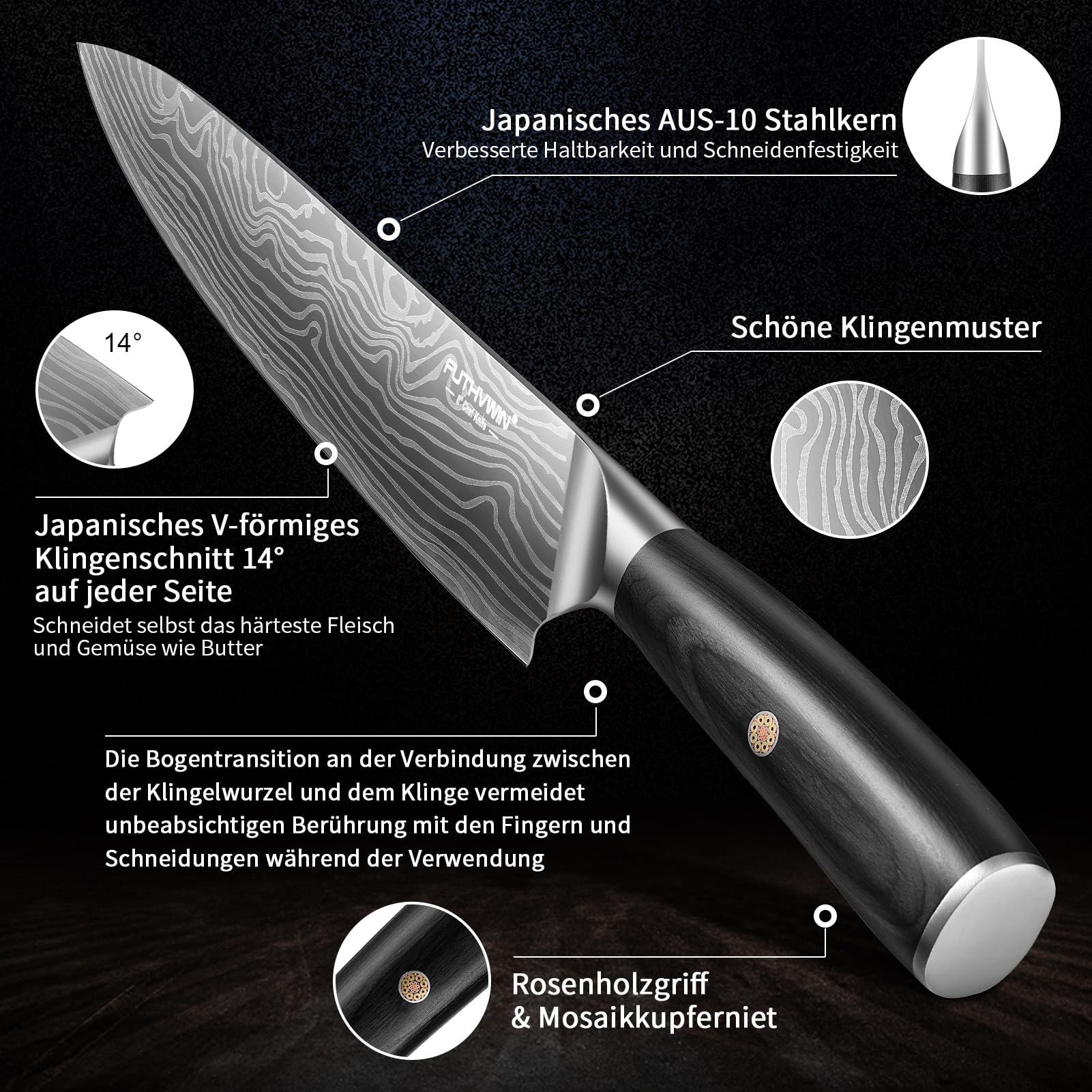 - Hochwertiger Klingenstahl: Hergestellt aus langlebigem und rostbeständigem japanischem AUS-10 Karbon-Edelstahl.