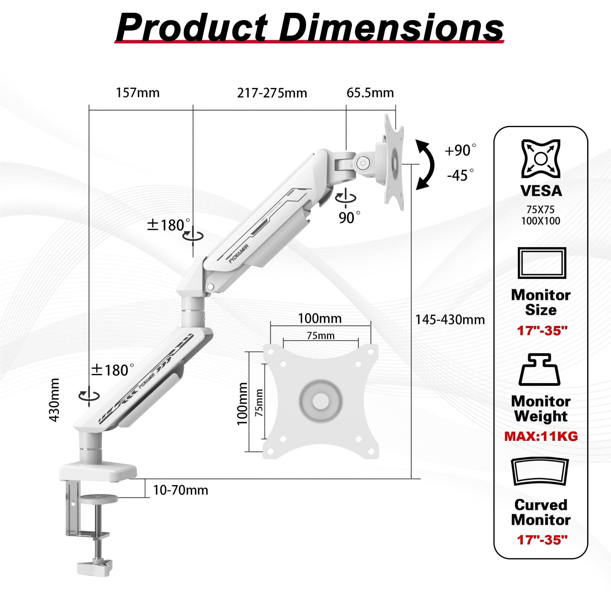 Fydeamer Gasfeder Monitorhalterung Einzel 17-35 Zoll – Weiss
