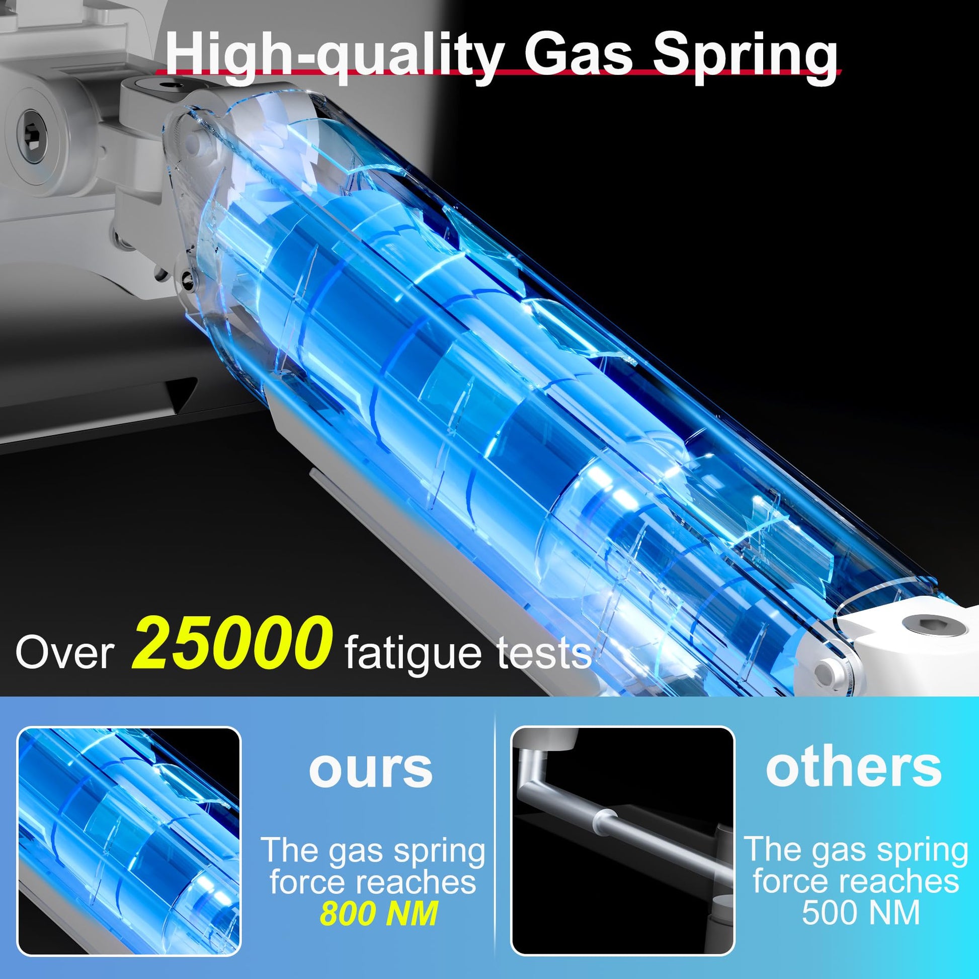 - Industrielle Stabilität: Ausgestattet mit langlebigen Gasfedern in Automobilqualität, die für über 25'000 Bewegungszyklen getestet wurden. Die verstärkte Bauweise sorgt für eine aussergewöhnlich stabile Halterung.