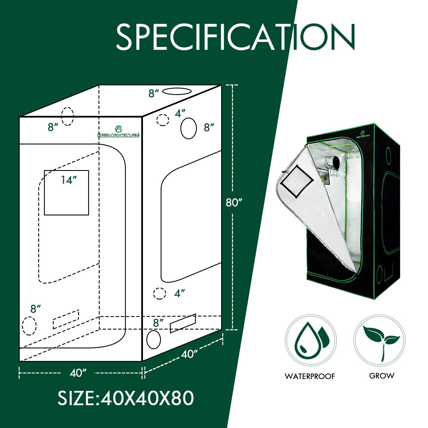 Dieses Growzelt von GreenArchitecture bietet eine professionelle und kontrollierte Umgebung für den erfolgreichen Anbau Ihrer Zimmerpflanzen. Es wurde entwickelt, um eine maximale Lichteffizienz und einfache Handhabung zu gewährleisten.