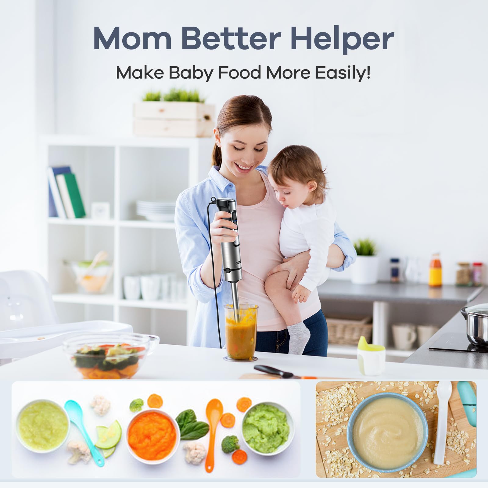Dieser elektrische 10-in-1 Stabmixer ist ein multifunktionales Kraftpaket, das Ihnen die Zubereitung unzähliger Gerichte im Alltag erleichtert.