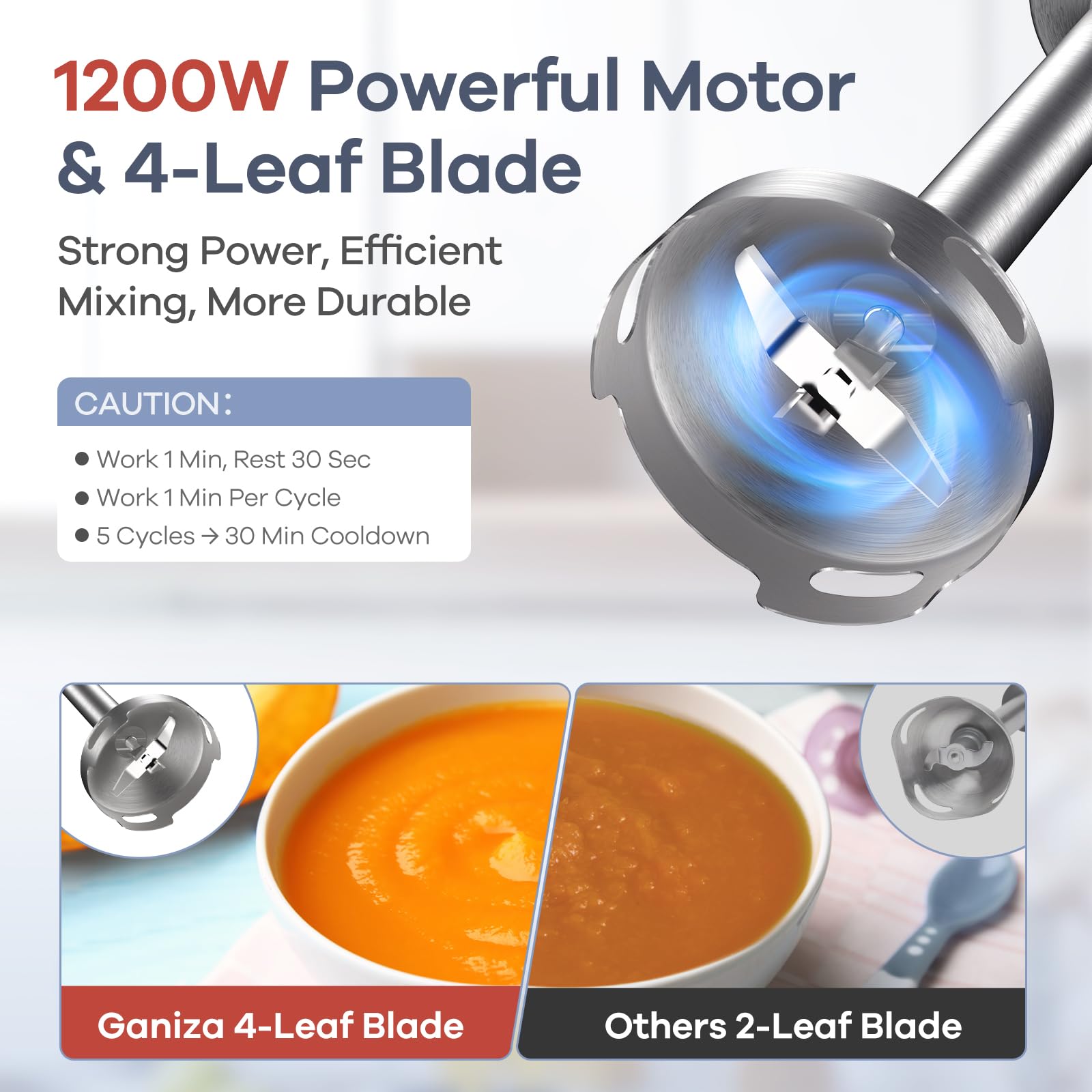 Ganiza 10-in-1 Stabmixer 1200W mit Doppel-Milchaufschäumer