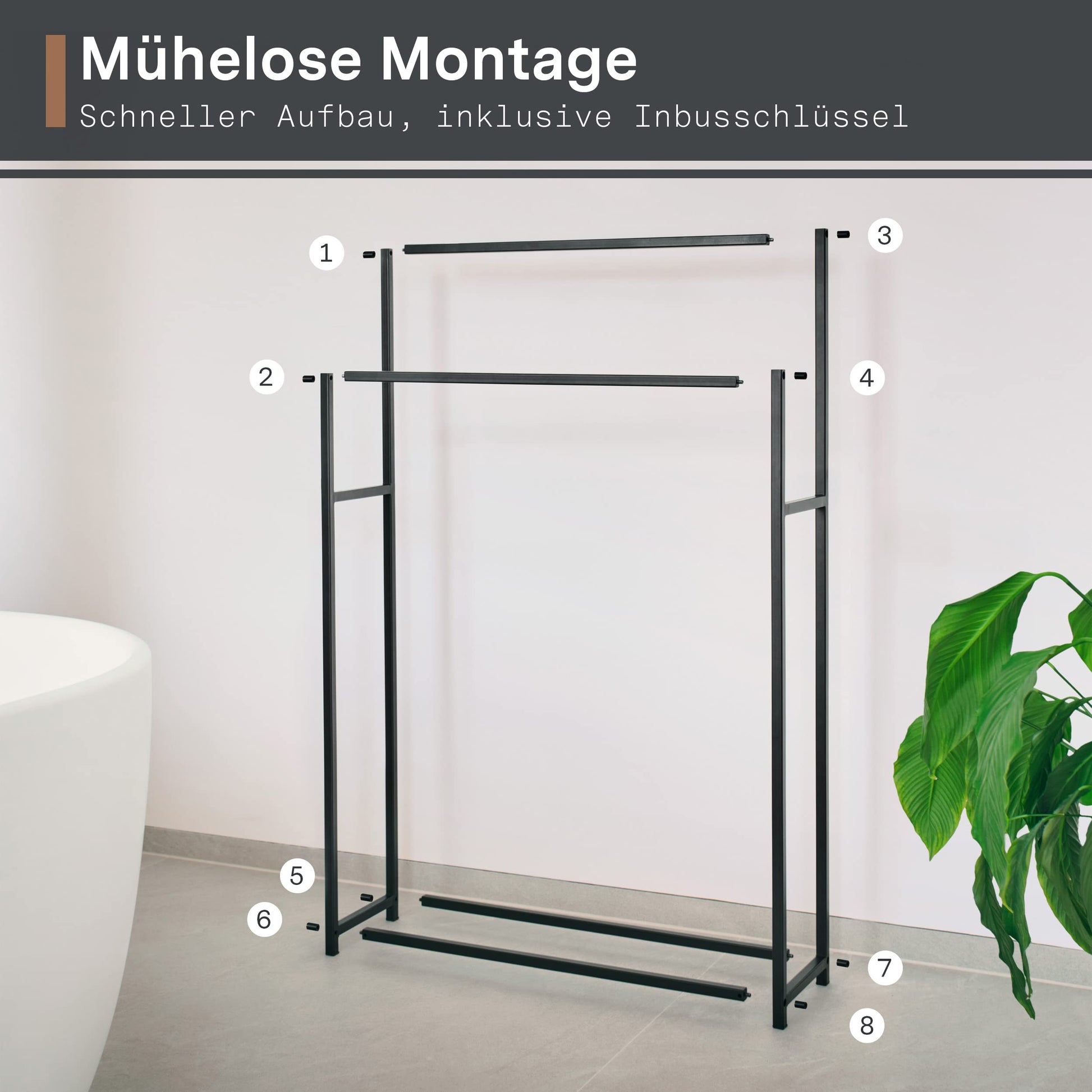 GARDELI® Handtuchständer stehend extra gross Schwarz