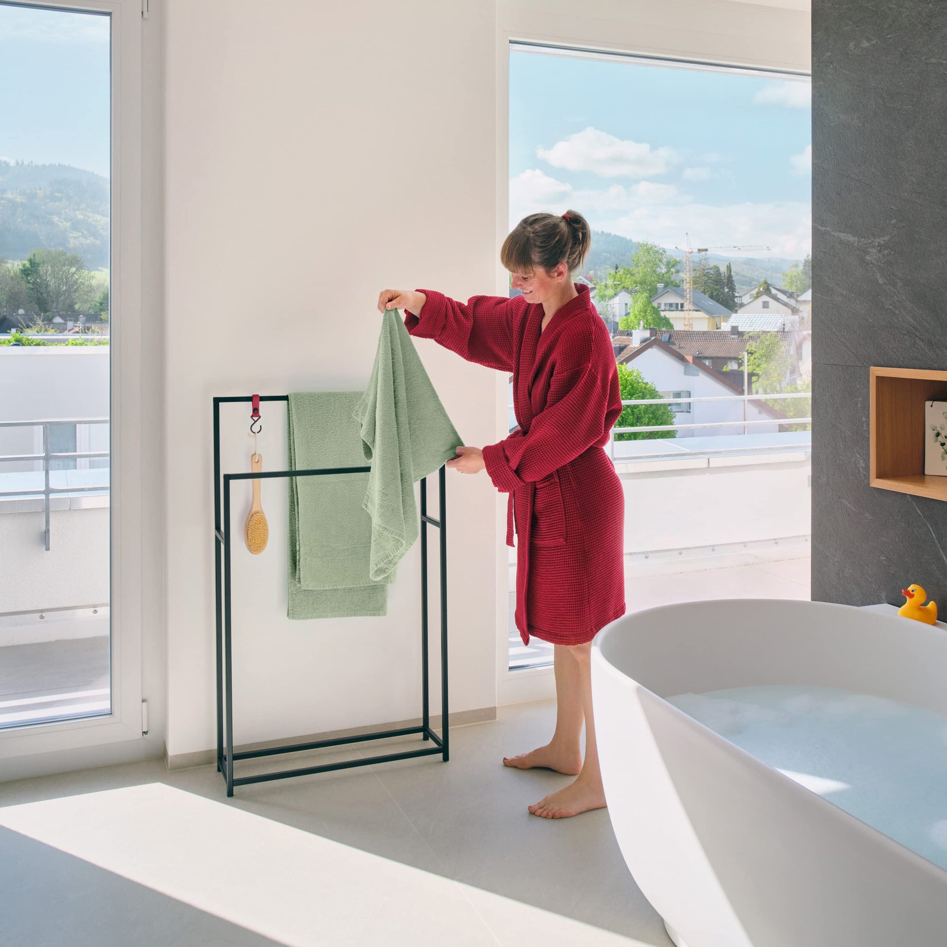 Aussergewöhnliche Stabilität: Hergestellt aus dicken, massiven Stahl-Vierkantrohren, garantiert der Handtuchhalter durch sein hohes Eigengewicht einen sicheren und festen Stand. Die robuste Beschichtung sorgt für eine besondere Langlebigkeit.
