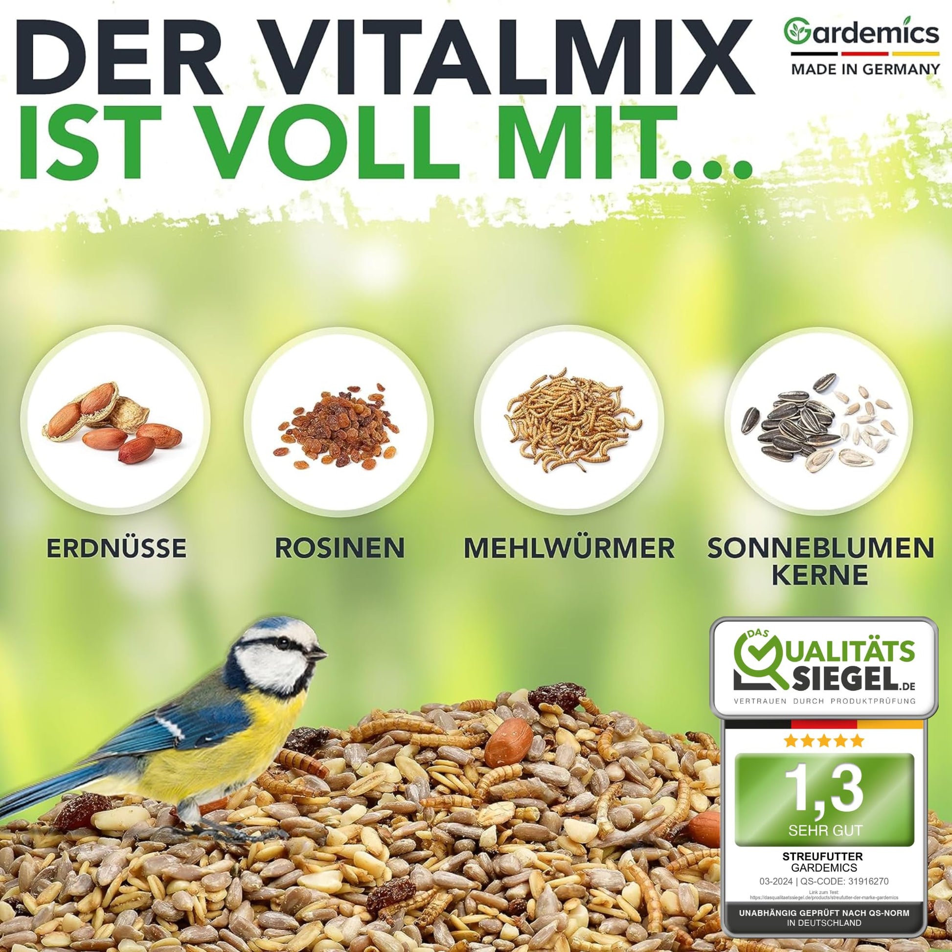Verwandeln Sie Ihren Garten in ein Paradies für heimische Wildvögel mit diesem hochwertigen Ganzjahresfutter. Die sorgfältig abgestimmte Mischung liefert wichtige Nährstoffe und lockt eine bunte Vielfalt an gefiederten Gästen an.