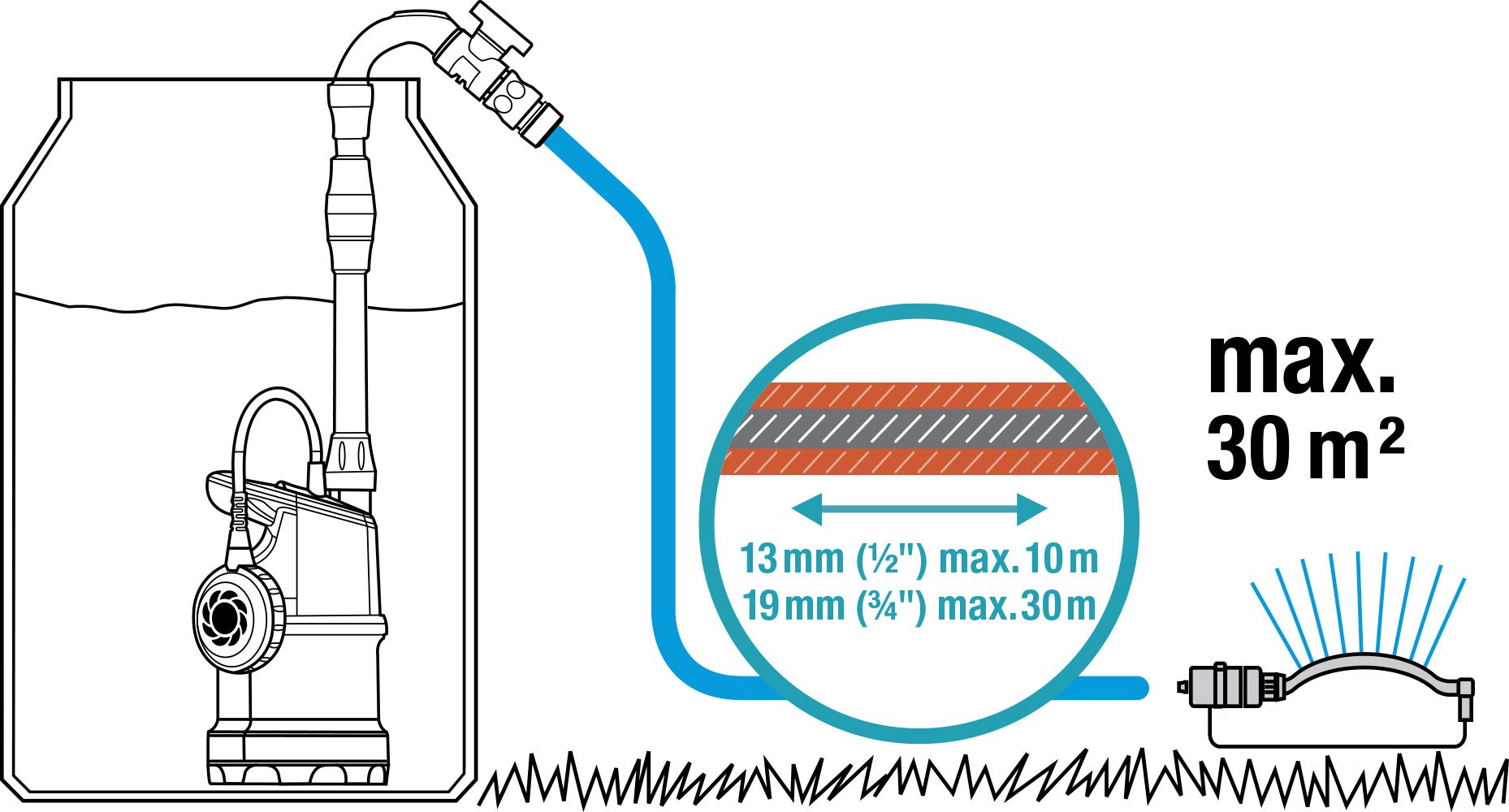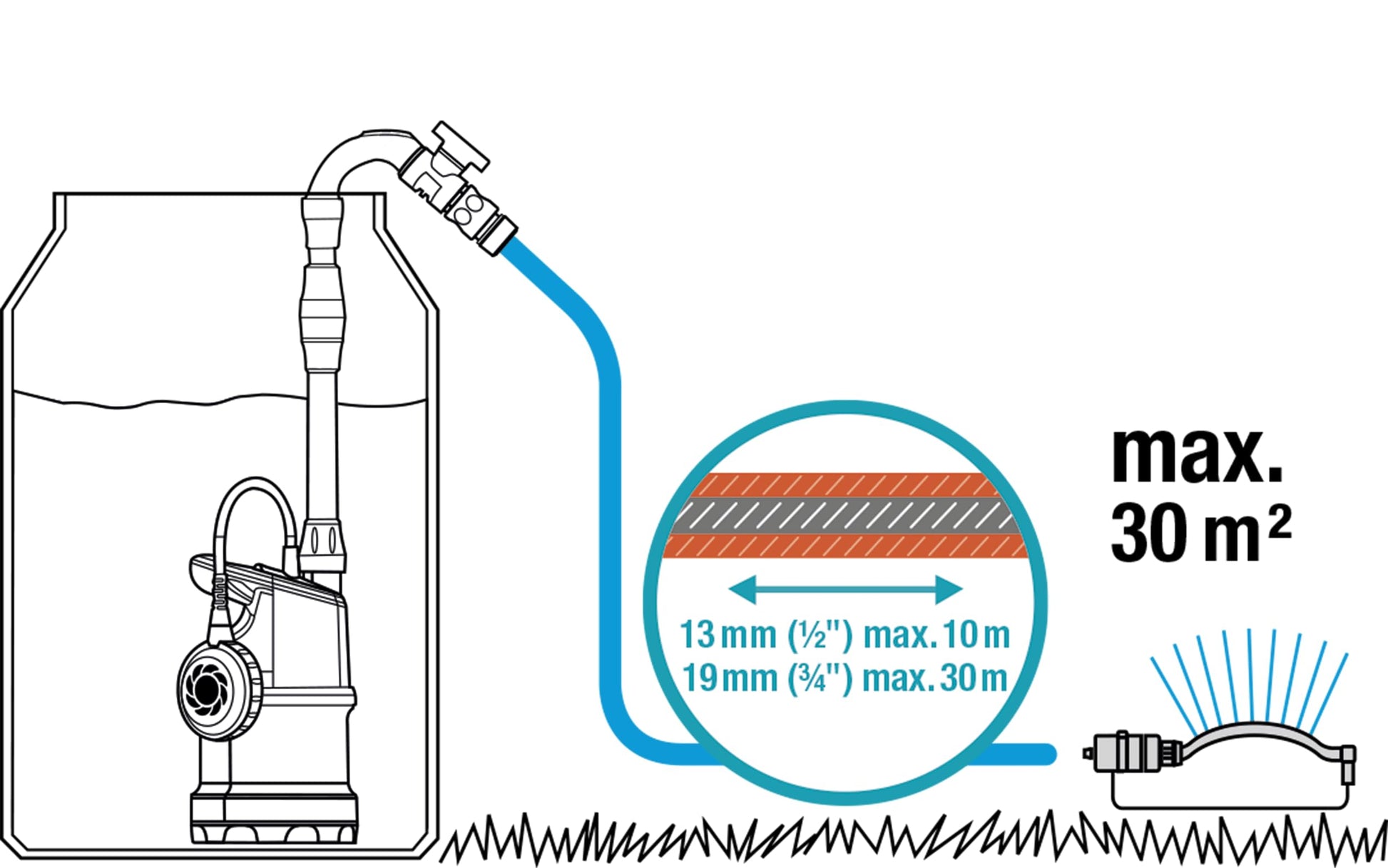 - Vielseitig einsetzbar: Ideal für die Bewässerung mit Gartenspritzen, Brausen oder kleineren Regnern sowie zum unkomplizierten Umpumpen oder Entleeren von Wasserbehältern.