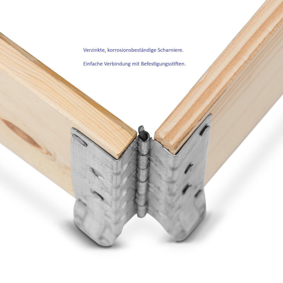 - Unkomplizierter Aufbau: Das durchdachte Stecksystem mit den mitgelieferten Stiften und robusten, verzinkten Scharnieren ermöglicht einen schnellen und werkzeuglosen Auf- und Abbau.