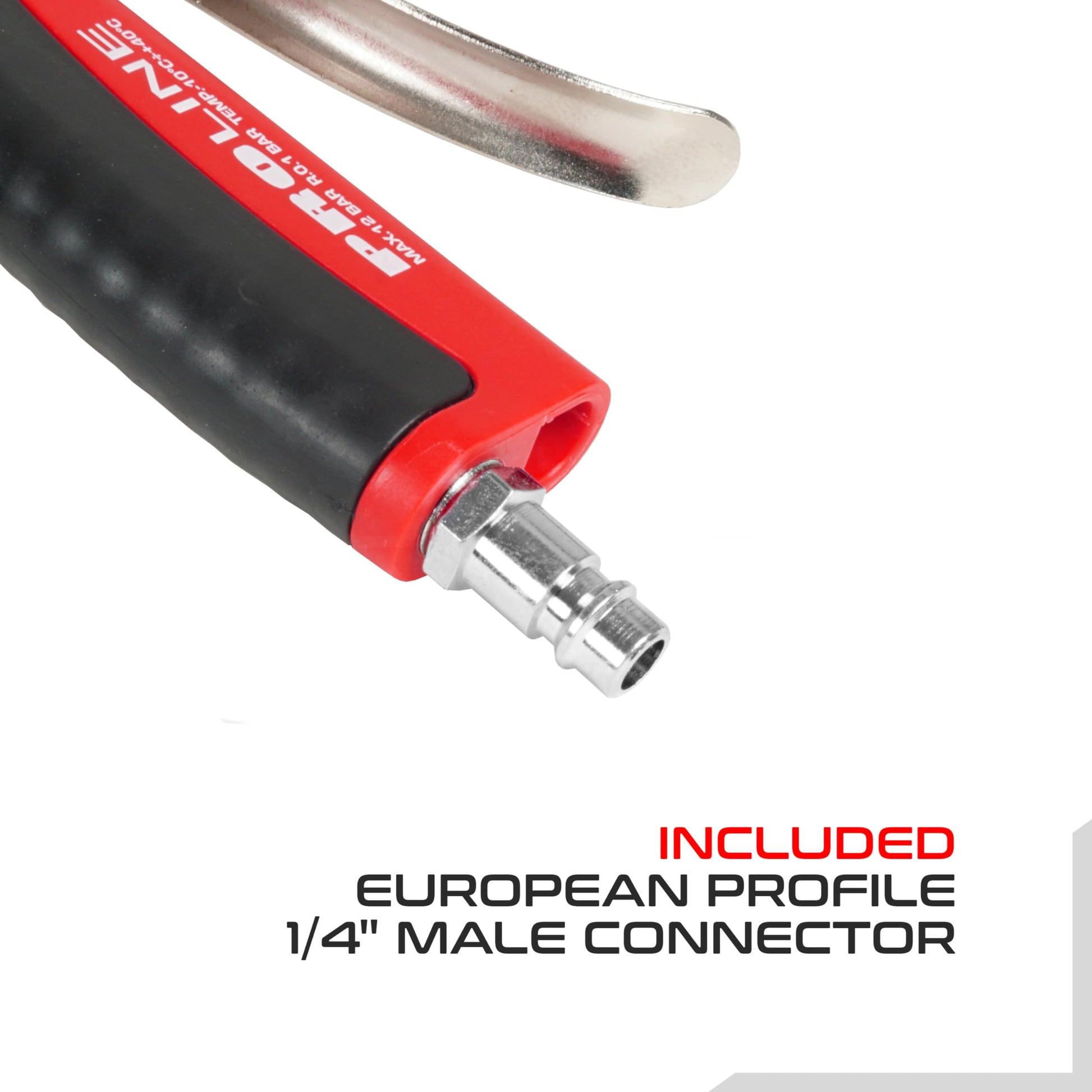 Das Gerät ist mit einem standardmässigen deutschen Bajonett-Kupplungsstecker (Aussengewinde) ausgestattet. Dieser gängige Anschluss gewährleistet eine breite Kompatibilität mit den meisten in Werkstätten und Garagen üblichen Druckluftsystemen.