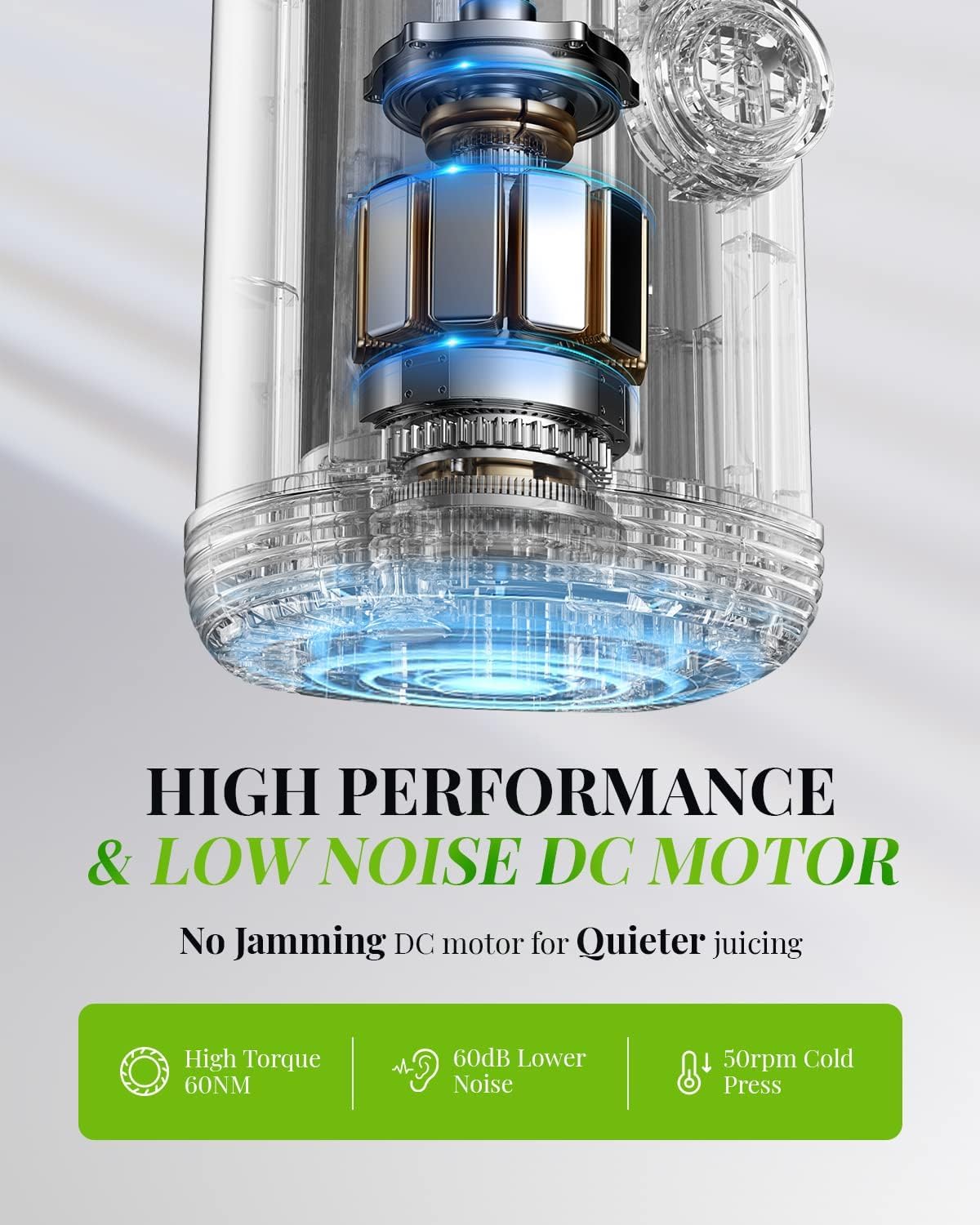 - Geräuscharmer Betrieb: Im Vergleich zu herkömmlichen Zentrifugalentsaftern arbeitet dieses Gerät deutlich leiser und ermöglicht ein angenehmes und ruhiges Entsaftungserlebnis zu jeder Tageszeit.