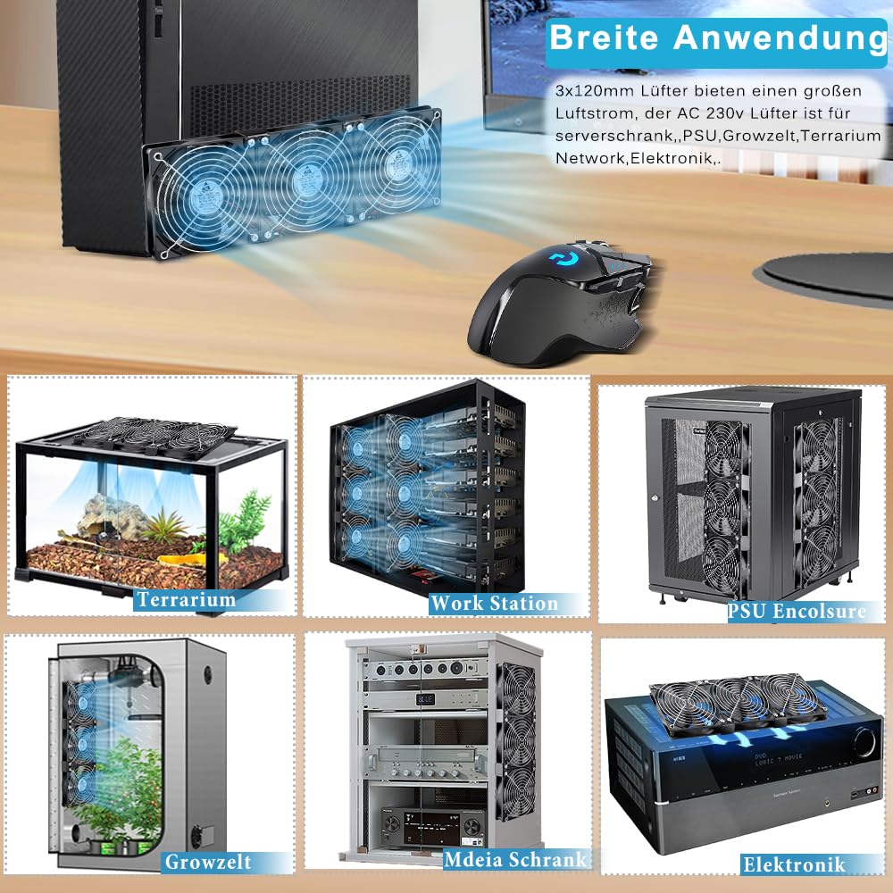 GDSTIME 3x 120mm Gehäuselüfter Set 230V - Einstellbare Geschwindigkeit