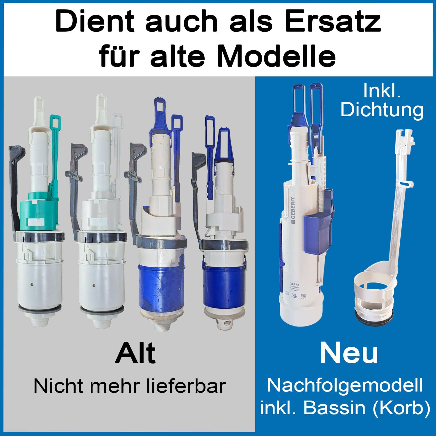 - Komplettset: Beinhaltet Füllventil, Heberglocke mit vormontierter Dichtung, Bassin-Korb mit vormontierter Dichtung sowie den passenden Niederhalter.