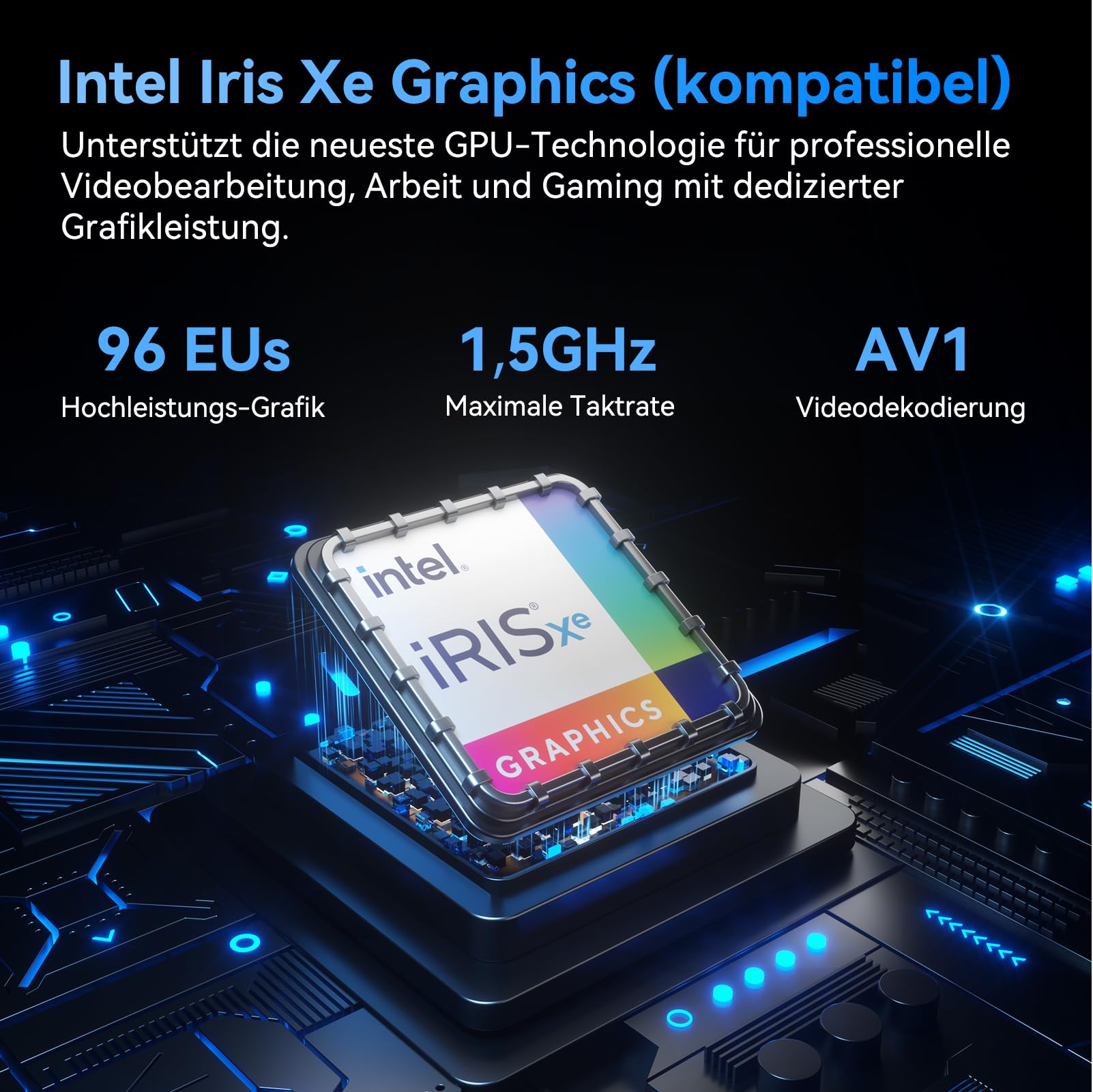 - Brillante 8K-Grafik: Die leistungsstarke Intel Iris Xe Grafik unterstützt den Anschluss von bis zu vier Monitoren gleichzeitig (2x 8K & 2x 4K) für ein atemberaubendes Multitasking-Erlebnis.