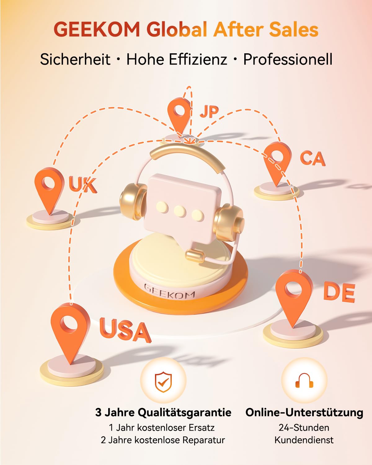Der GEEKOM A5 wird in der Regel mit vorinstalliertem Windows 11 Pro geliefert, sodass Sie ihn direkt nach dem Auspacken in Betrieb nehmen können. Er ist eine sofort einsatzbereite Komplettlösung für Ihr Homeoffice oder kreative Projekte.