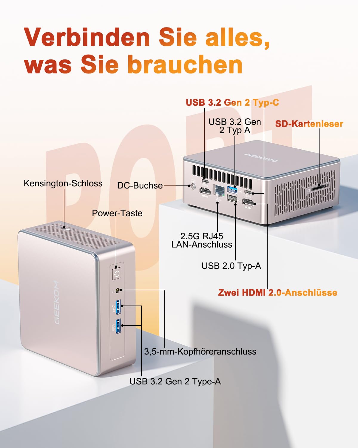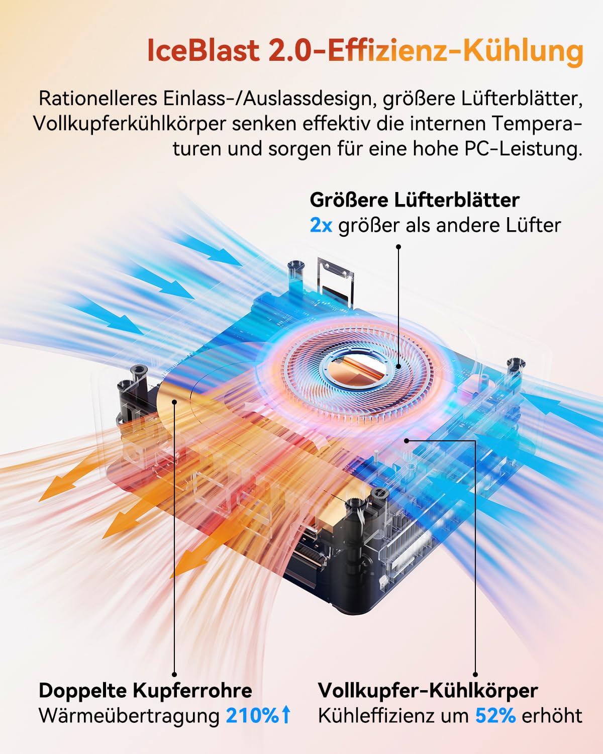 Dieser Mini-PC ist die perfekte, vielseitige Lösung für alle, die hohe Leistung auf kleinstem Raum suchen.