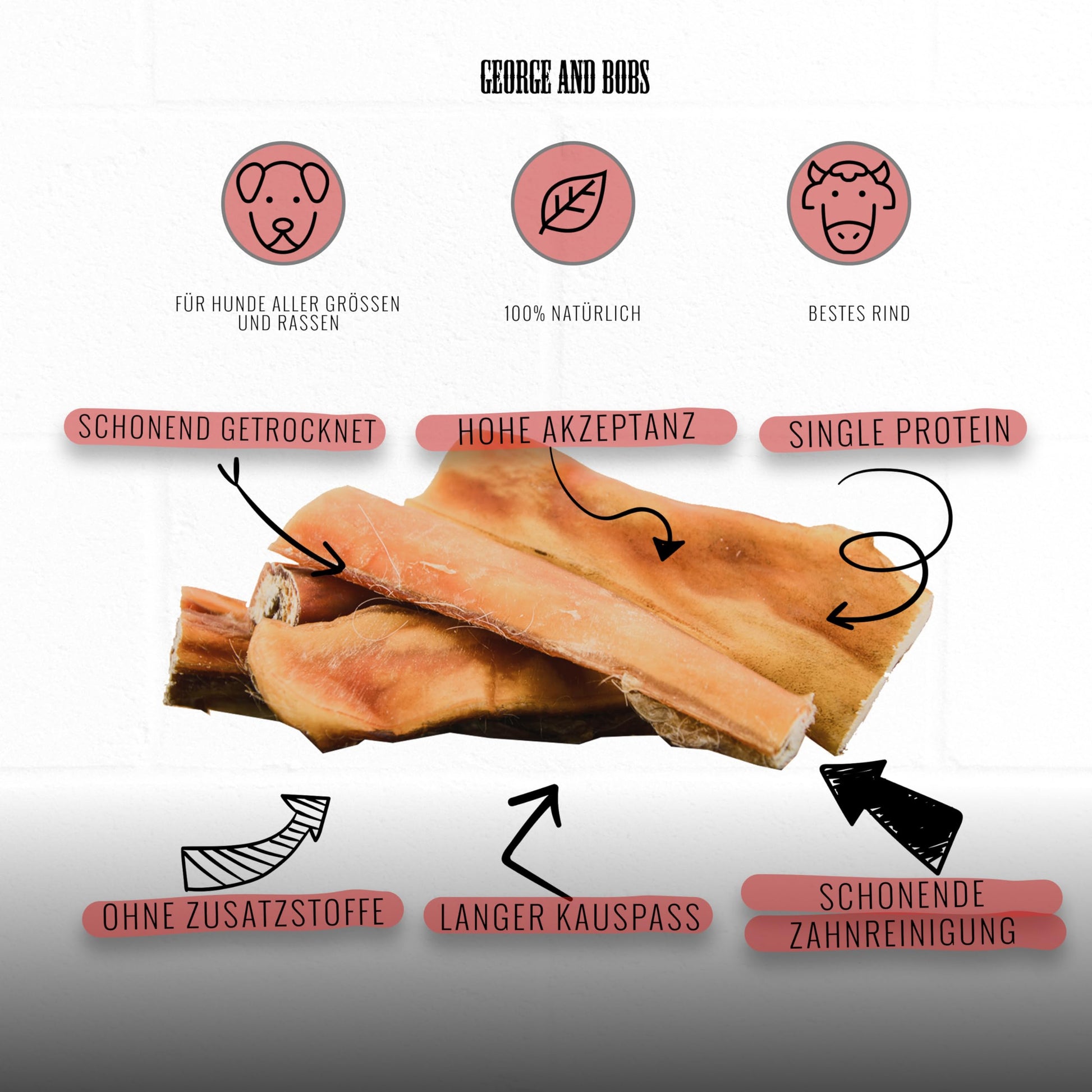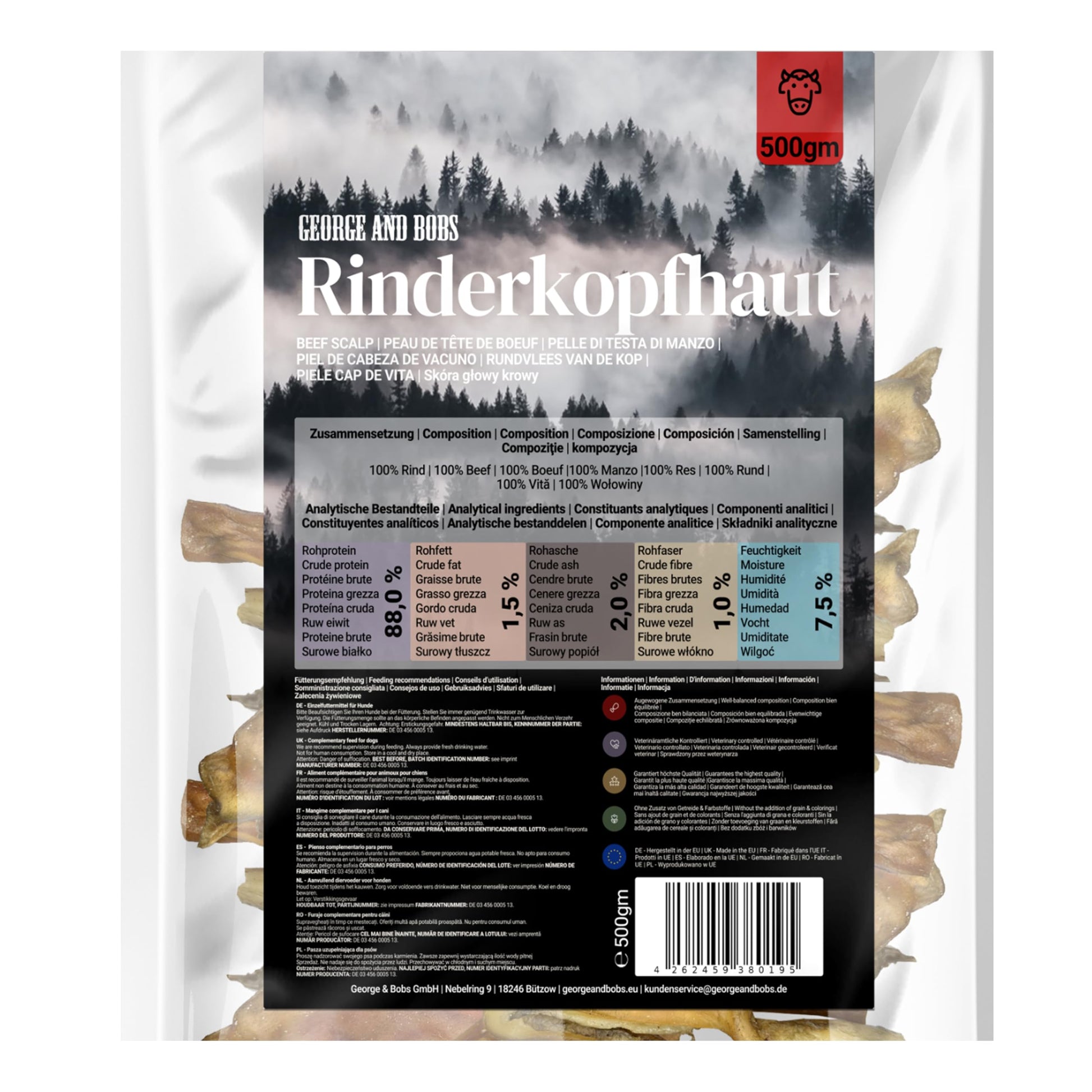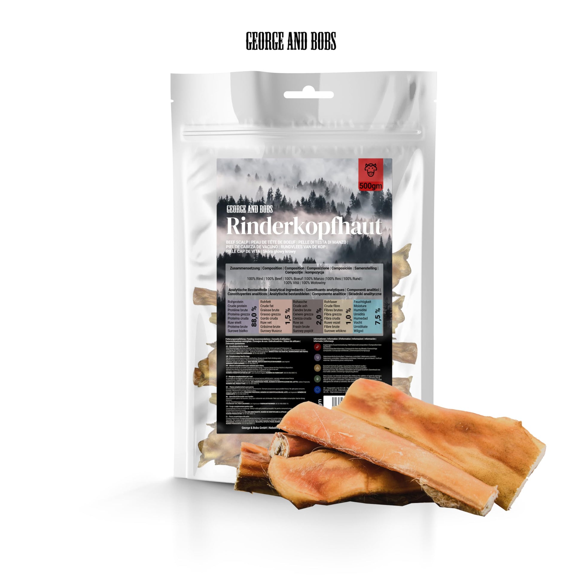 Verwöhnen Sie Ihren vierbeinigen Freund mit der Rinderkopfhaut von George & Bobs, einem authentischen und aromatischen Kausnack. Dieser naturbelassene Genuss bietet eine artgerechte Beschäftigung und unterstützt gleichzeitig das Wohlbefinden Ihres Hundes.