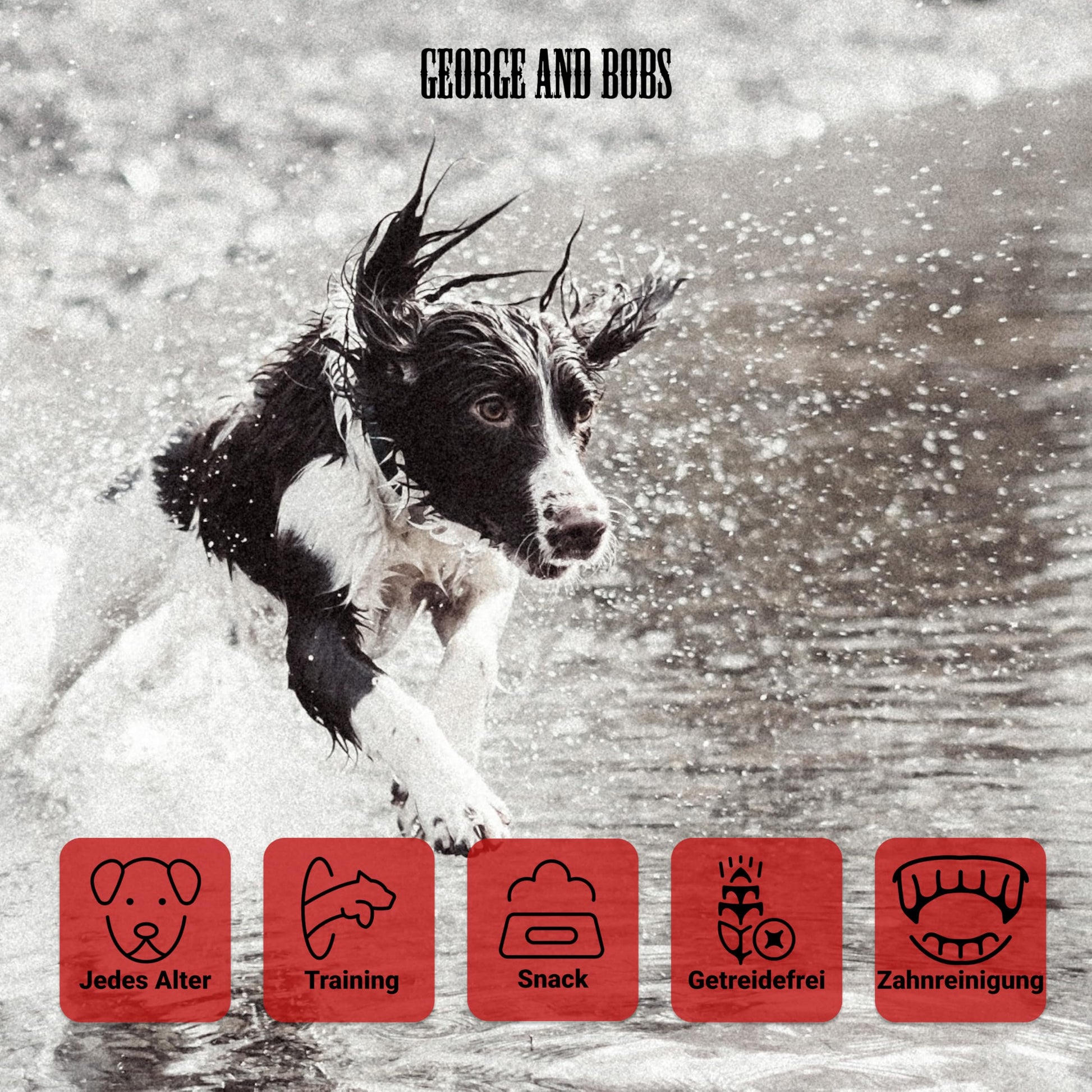 Dank des hohen Anteils an natürlichen Proteinen und des geringen Fettanteils leisten Sie einen wertvollen Beitrag zur Gesundheit Ihres Tieres. Da wir konsequent auf Füllstoffe verzichten, ist dieser Monoprotein-Snack auch für sensible Hunde bestens geeignet. Vertrauen Sie auf die Qualität von George & Bobs, bei der die Liebe zur Natur und zu unseren vierbeinigen Freunden im Mittelpunkt steht.