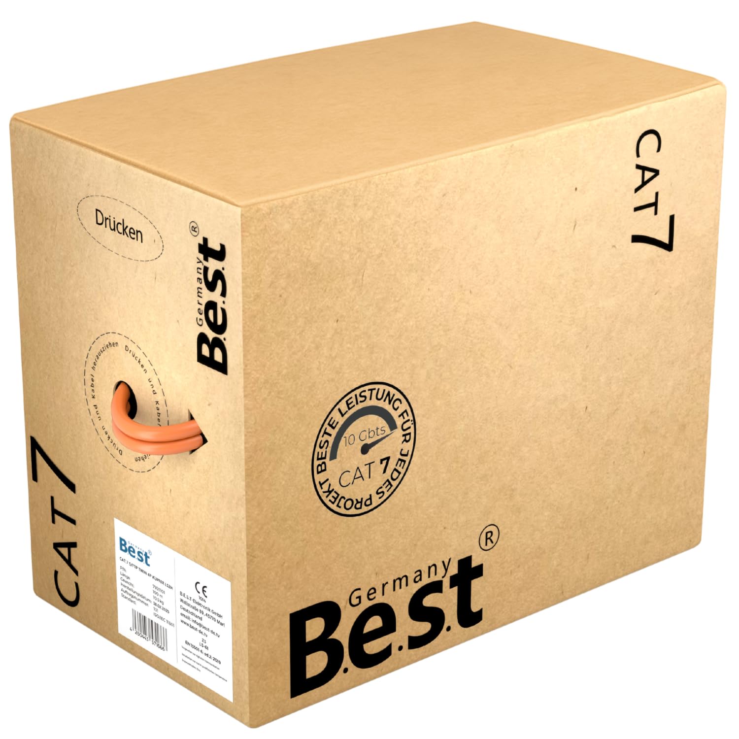 - Kabeltyp: CAT 7 Duplex Verlegekabel (S/FTP PIMF)