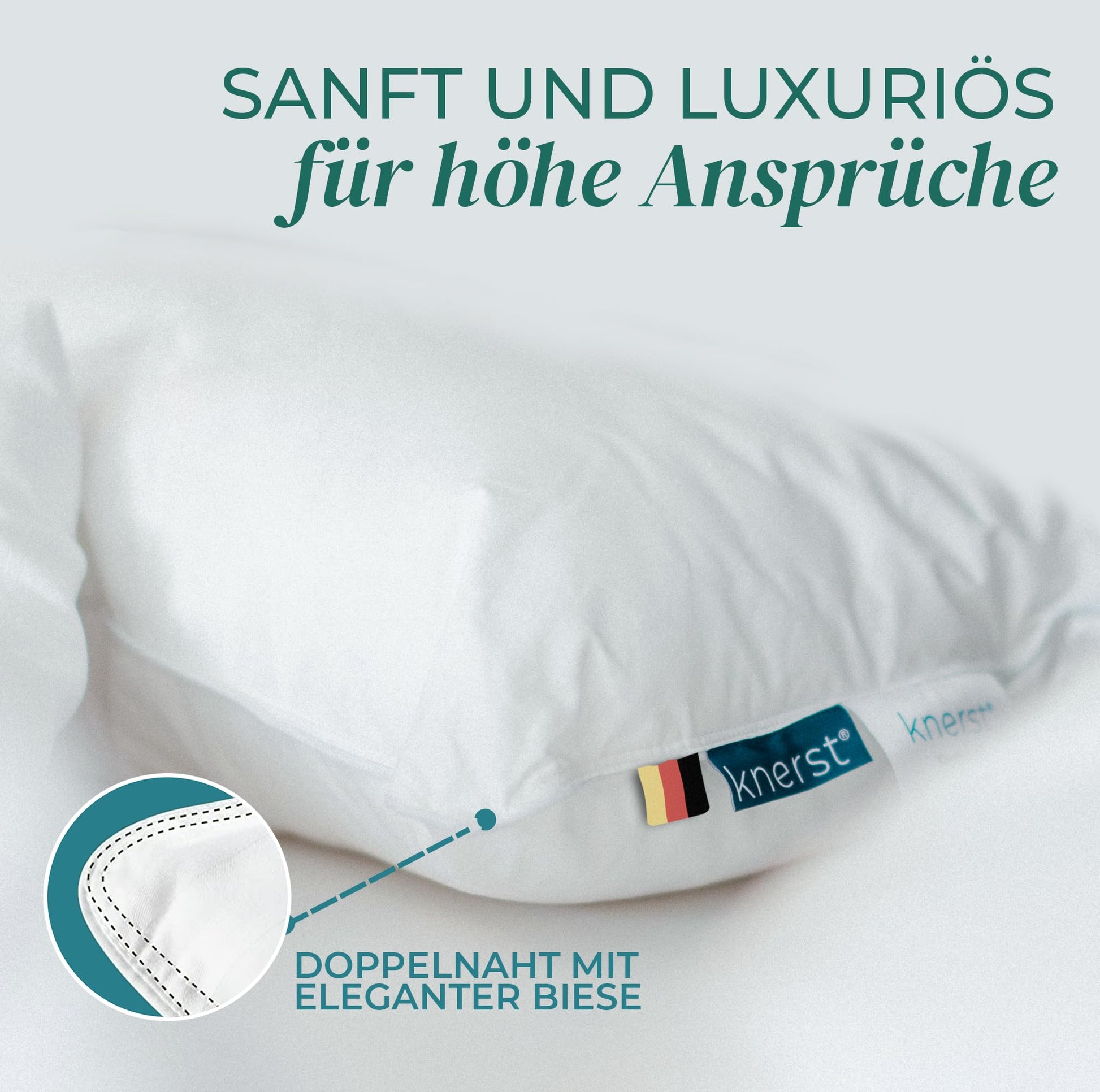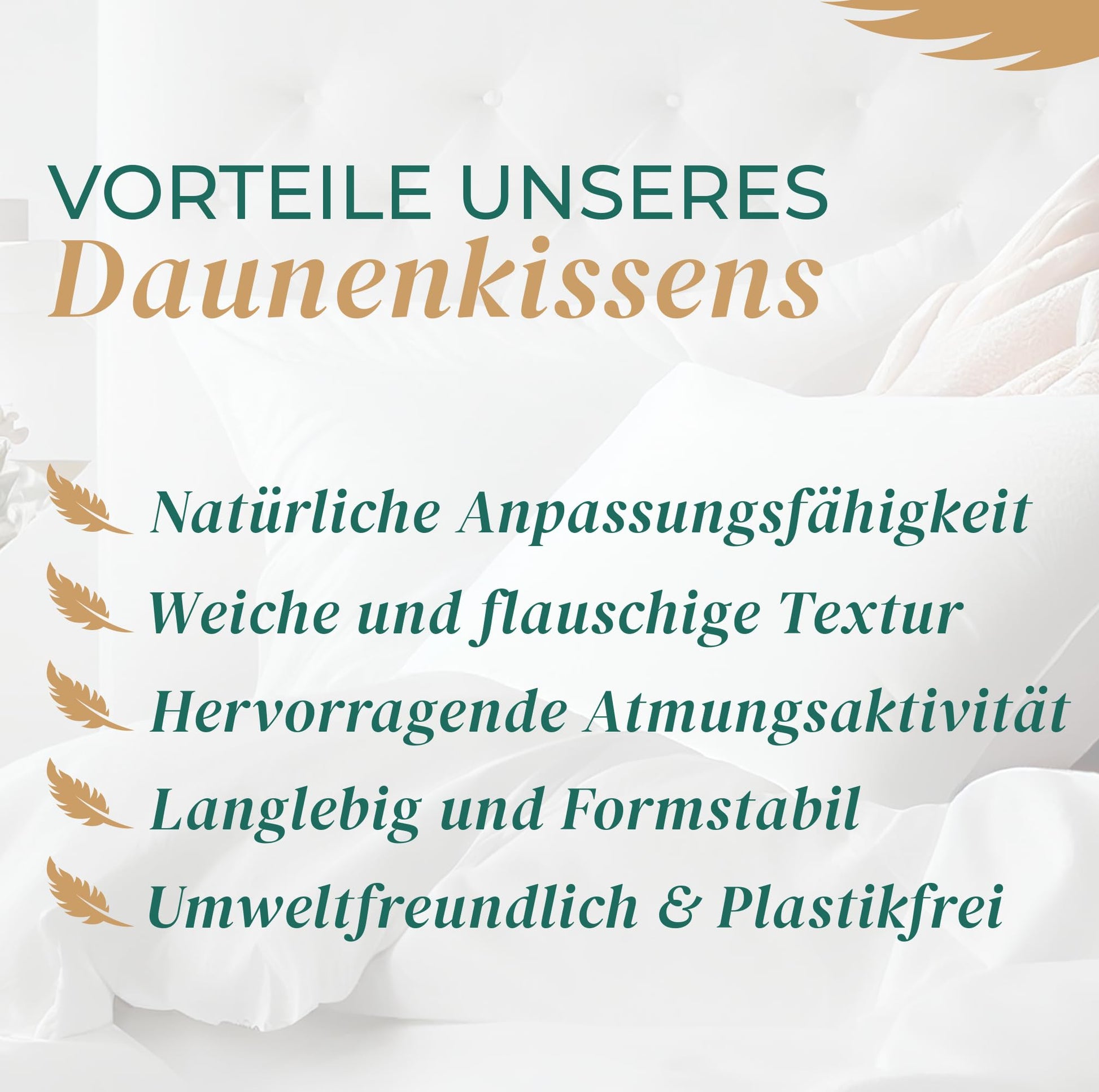 Gönnen Sie sich Nacht für Nacht erstklassigen Schlafkomfort mit diesem hochwertigen 3-Kammer-Daunenkissen, gefertigt in bewährter deutscher Qualität. Es bietet eine meisterhafte Kombination aus sanfter Gemütlichkeit und zuverlässiger Unterstützung.