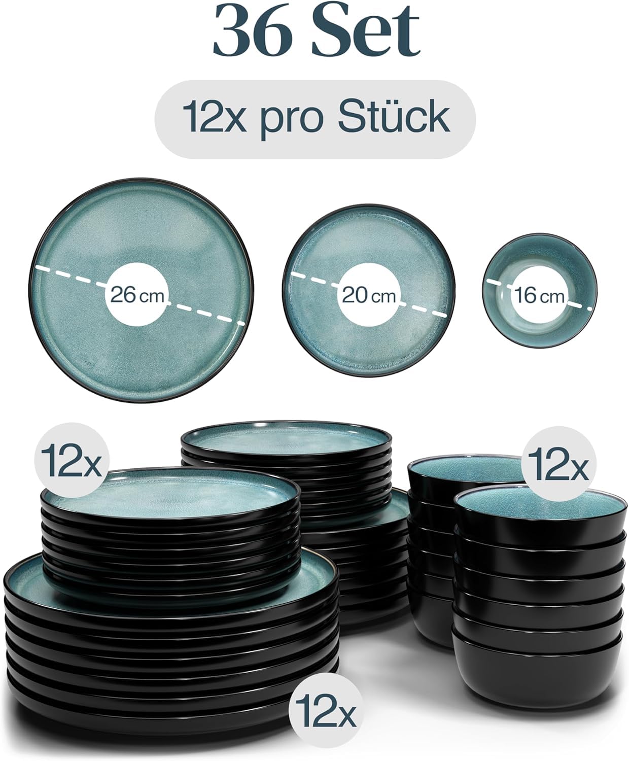 - Komplettes Set für 12 Personen: Beinhaltet 12 Speiseteller, 12 Frühstücksteller und 12 vielseitig nutzbare Schalen.