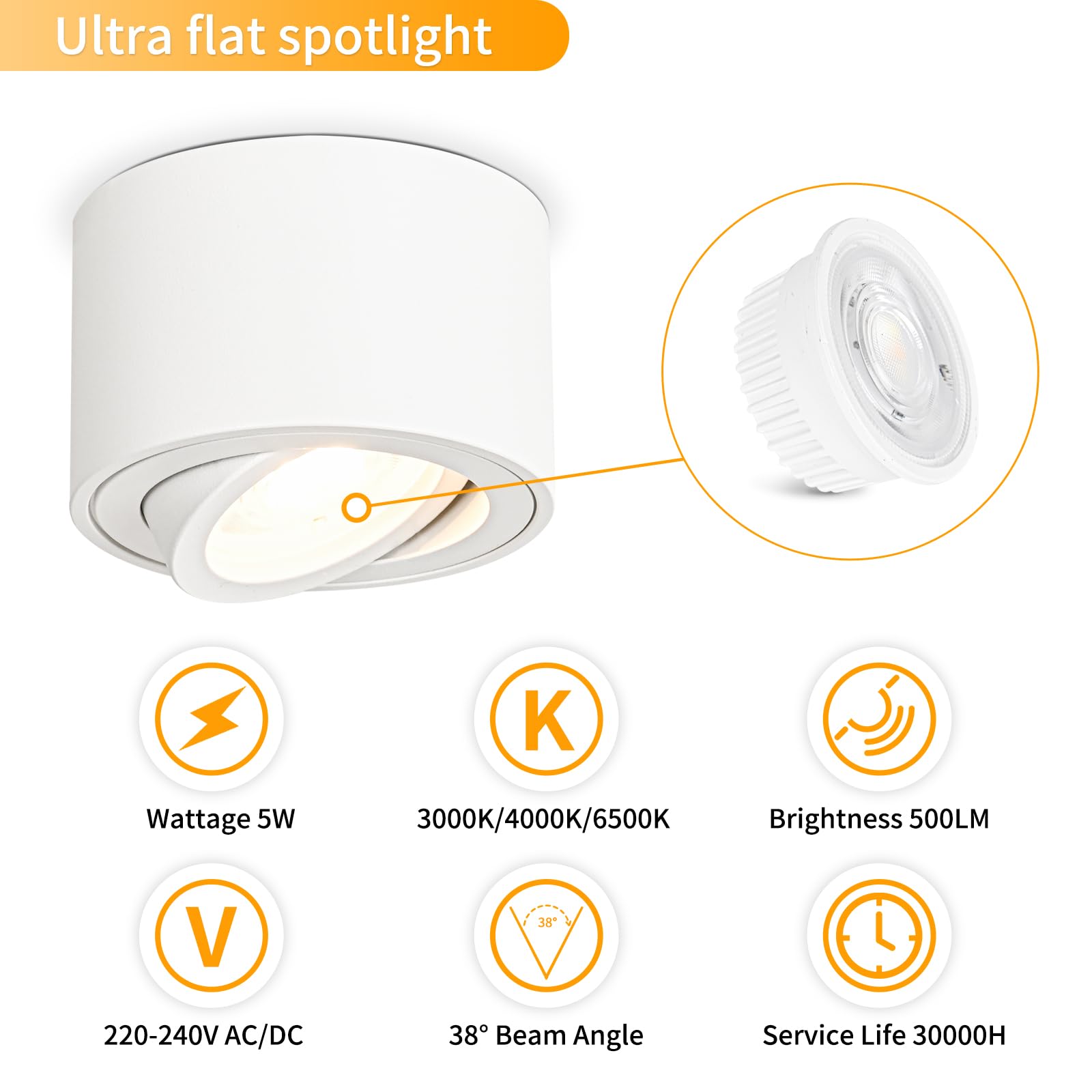 GeyouLux LED Aufbauspot Dimmbar Rund Weiss - Extra Flach