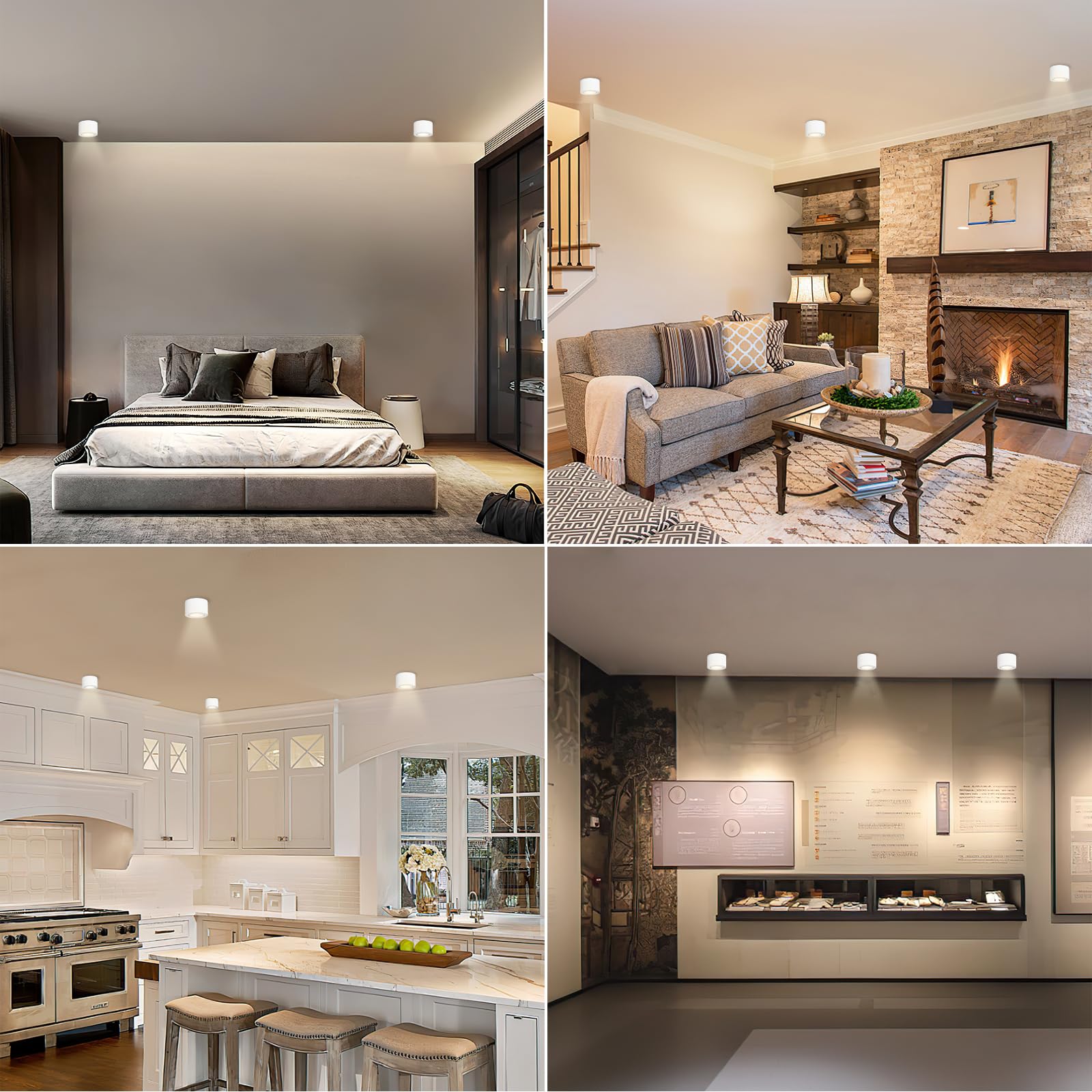 Bringen Sie mit diesem praktischen 4er-Set moderner LED-Aufbauspots eine vielseitige und hochwertige Beleuchtung in Ihre vier Wände. Das extra flache Design fügt sich nahtlos in jede Decke ein und bietet eine elegante Alternative zu herkömmlichen Einbauleuchten.