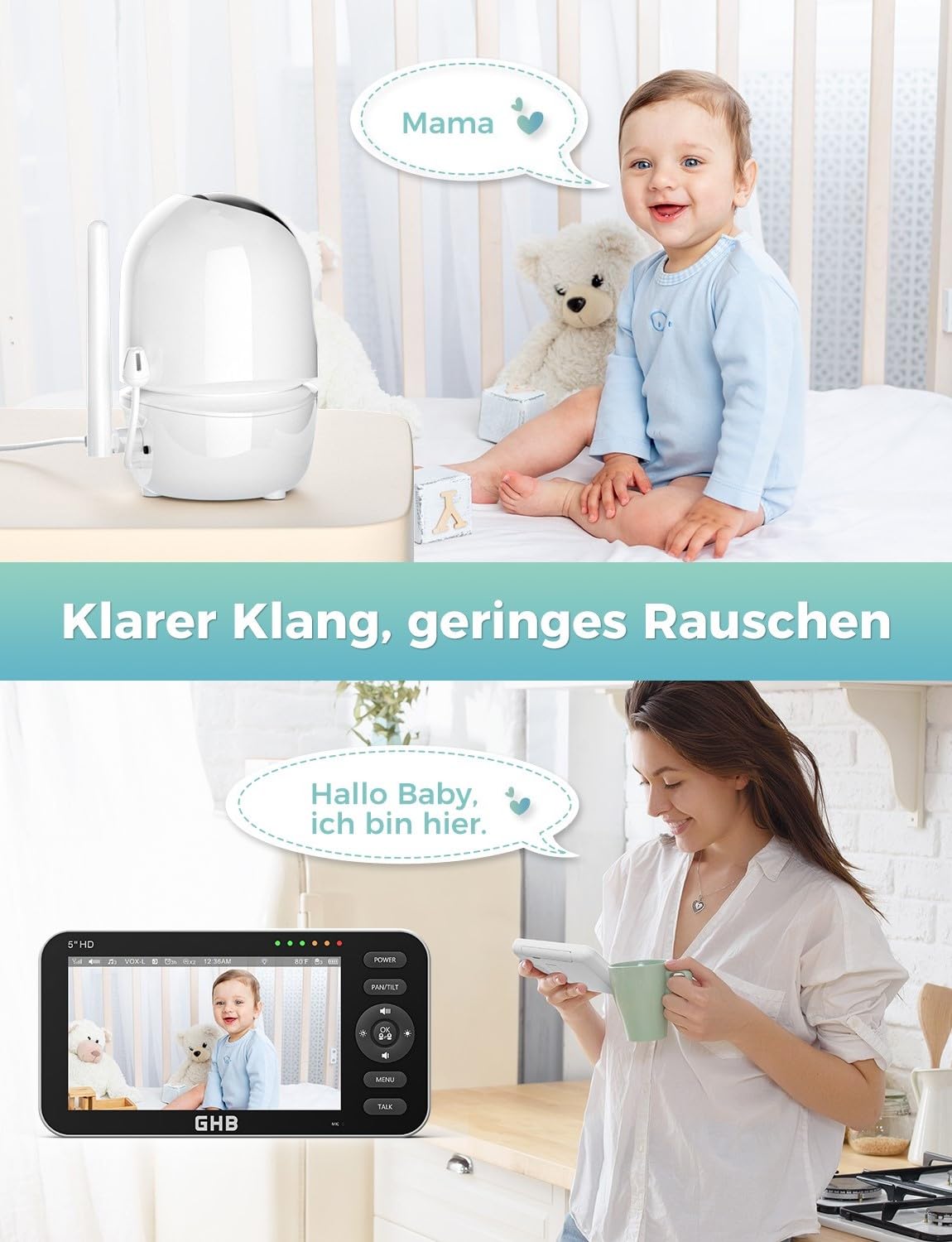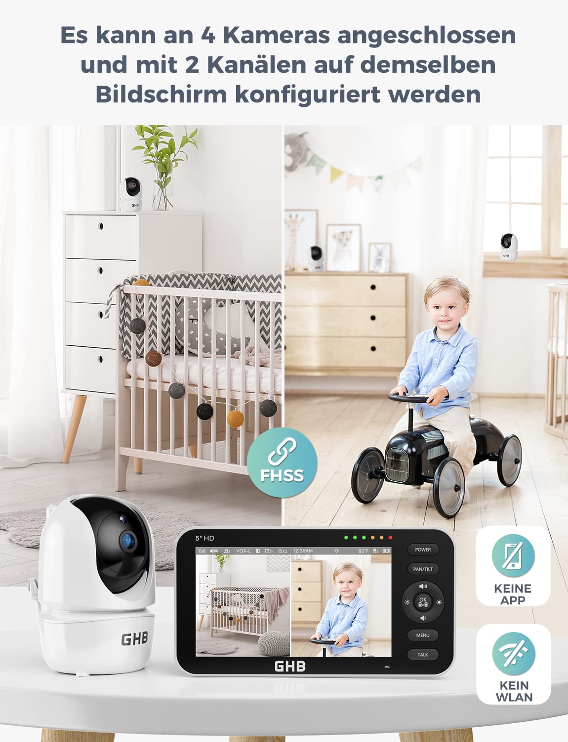 GHB Babyphone mit Kamera 5 Zoll HD IPS-Display Modell 2023