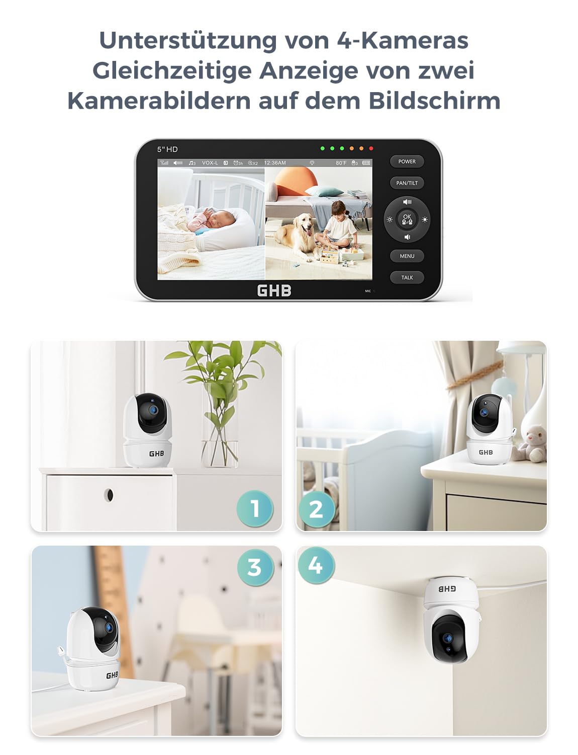 GHB Überwachungskamera für 5 Zoll Babyphone - Modell 2023