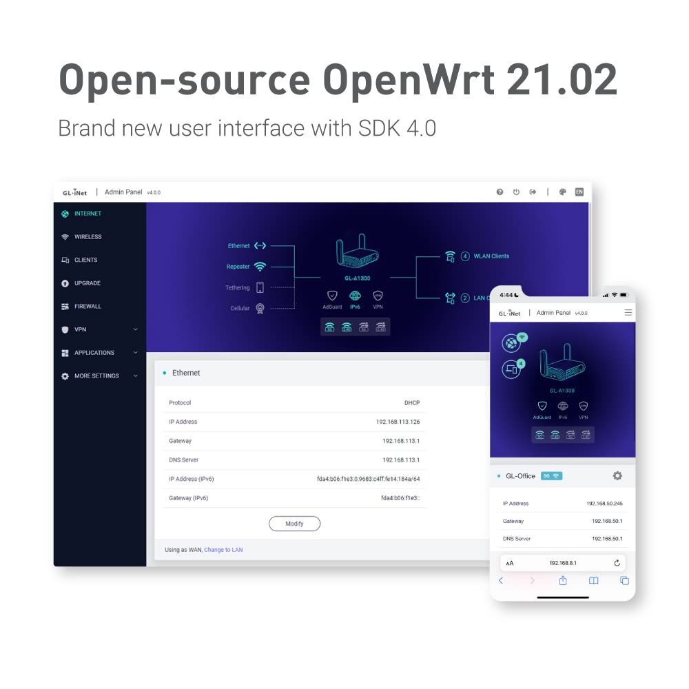 - Open Source & anpassbar: Läuft auf dem modernen OpenWrt 21.02 Betriebssystem, was Signalstörungen minimiert und Ihnen die Freiheit gibt, den Router durch eigene Anwendungen zu erweitern.