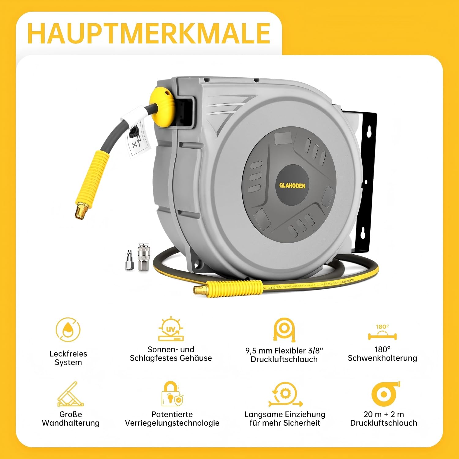 GLAHODEN Druckluftschlauchtrommel 20m+2m mit 9.5mm Schlauch