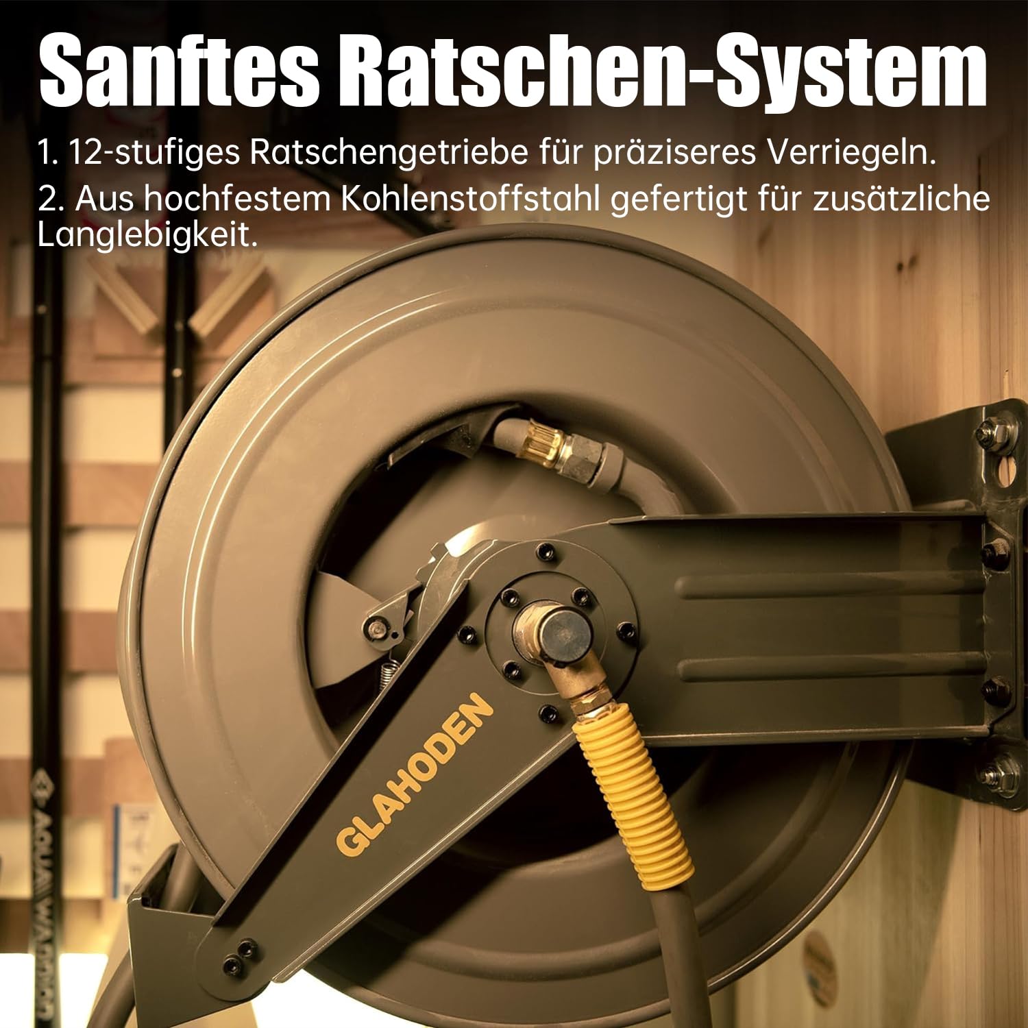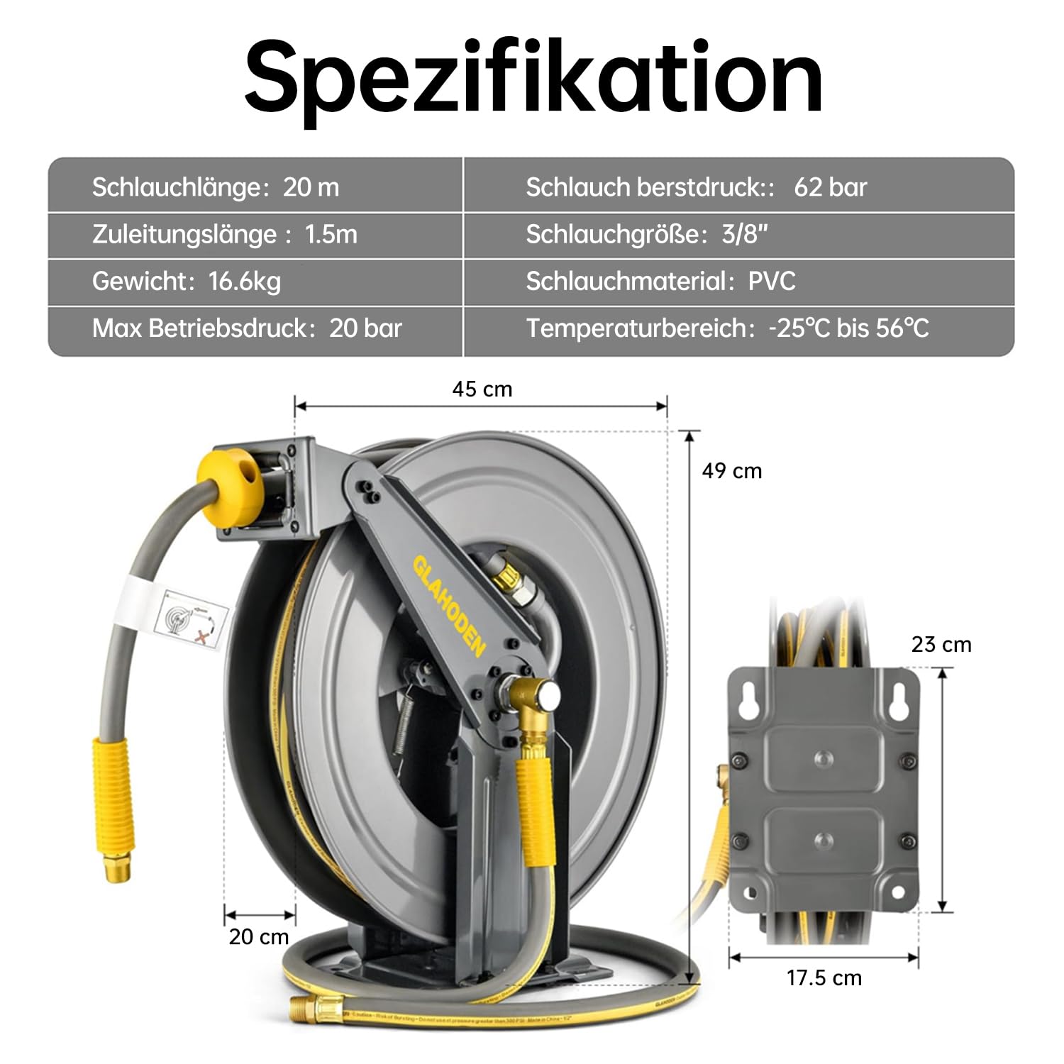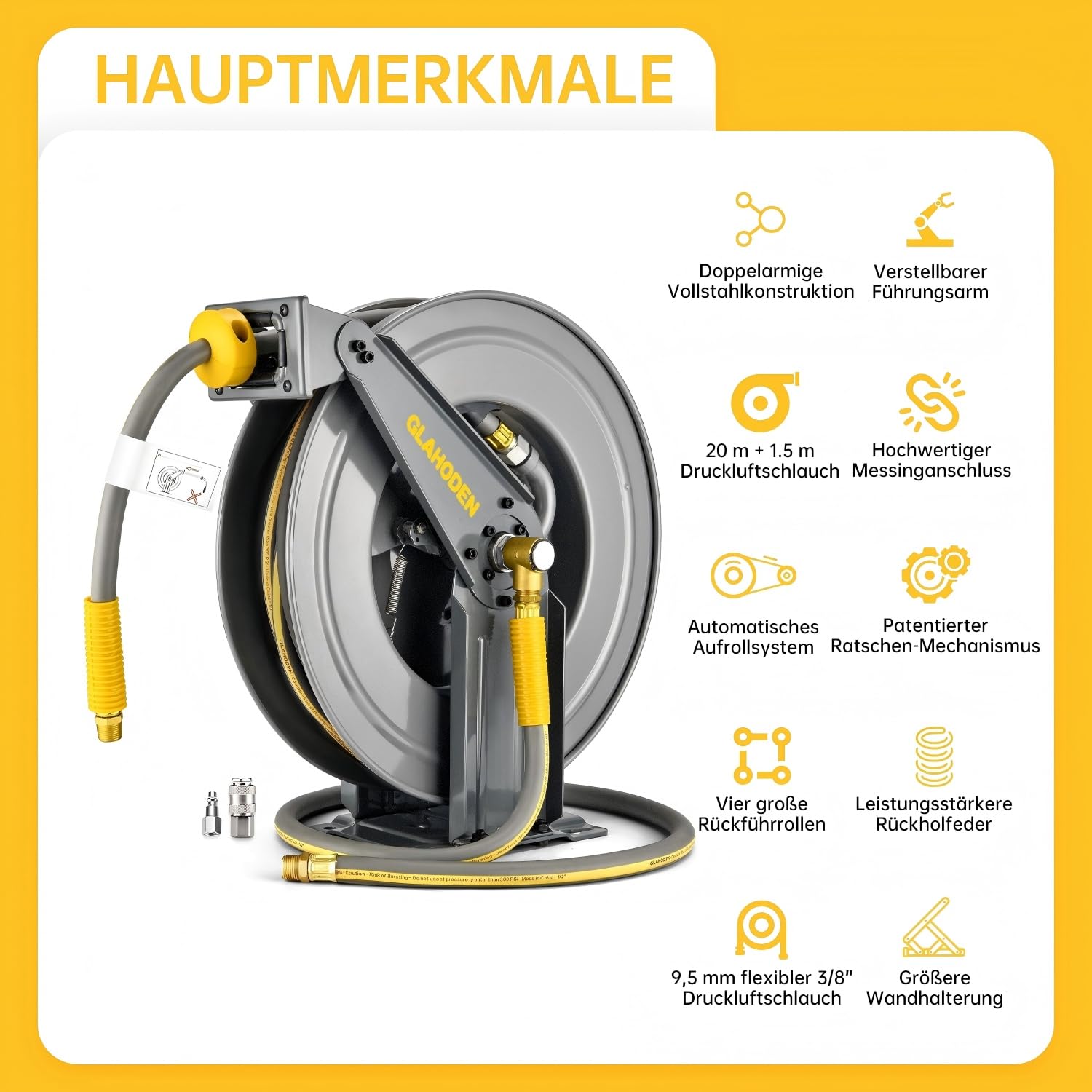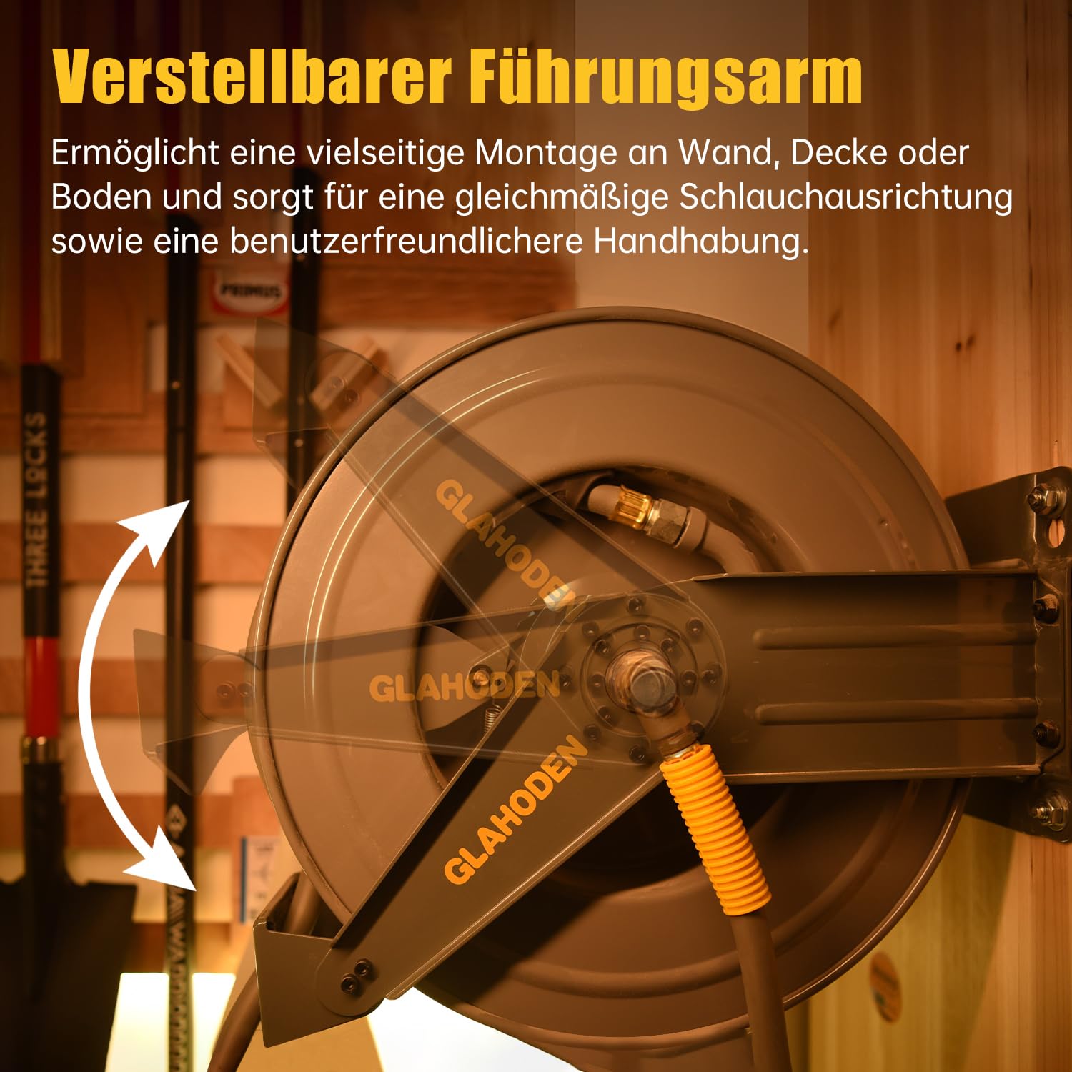 GLAHODEN Doppelarmiger einziehbarer Luftschlauchtrommel - 20M
