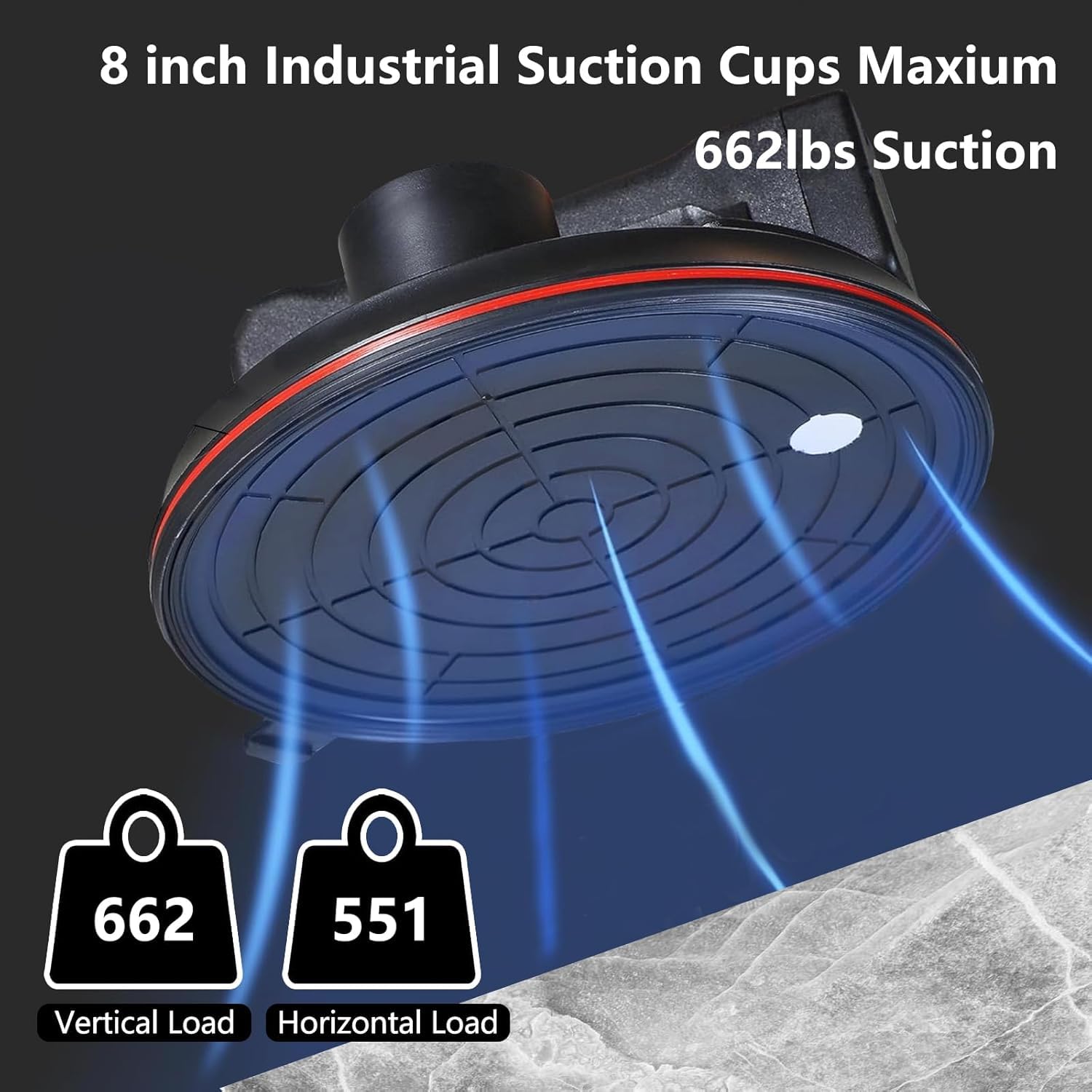 Jeder Saugheber bewältigt eine beeindruckende vertikale Last von bis zu 300 kg und eine horizontale Last von bis zu 250 kg, ideal für schwere Materialien wie grosse Glasplatten oder Fliesen.