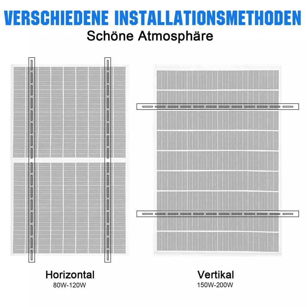 - Variable Ausrichtung: Die Solarpaneele können wahlweise horizontal oder vertikal an den Schienen befestigt werden.