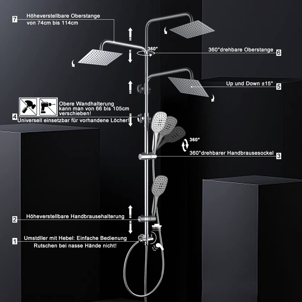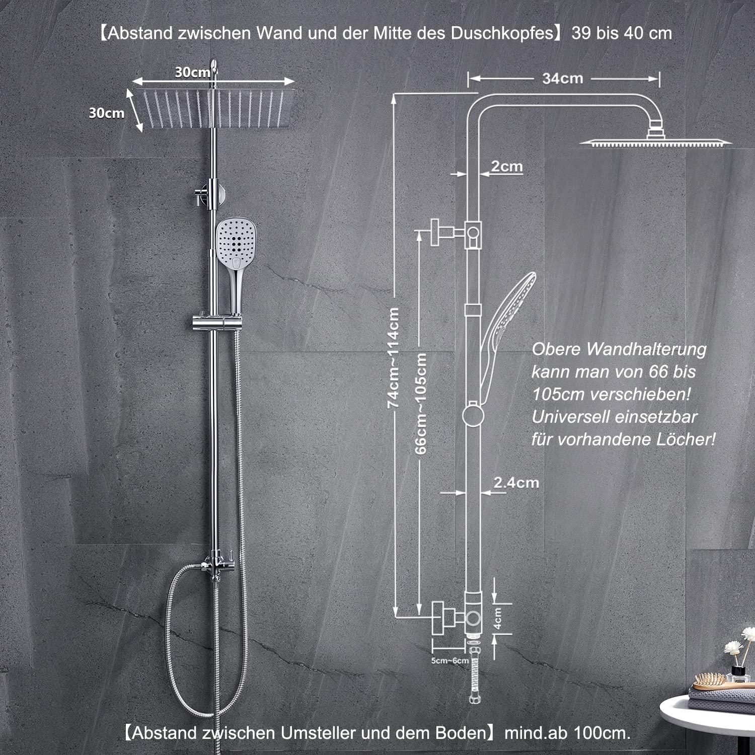 - Wichtiger Hinweis: Dieses Duschset wird ohne Armatur oder Thermostat geliefert und dient als Aufputz-System für einen bestehenden Anschluss.