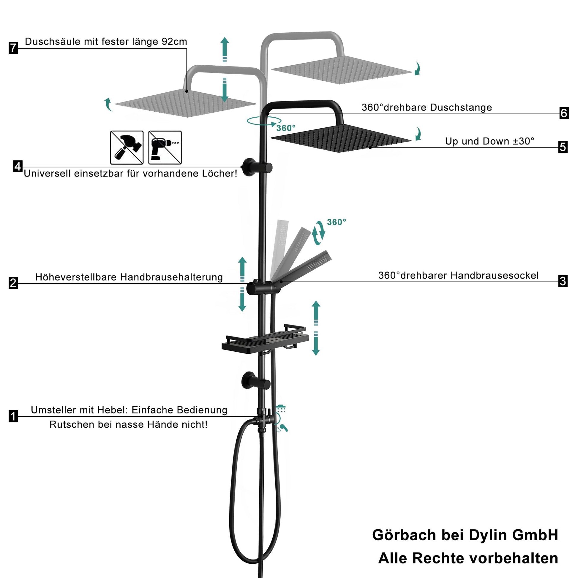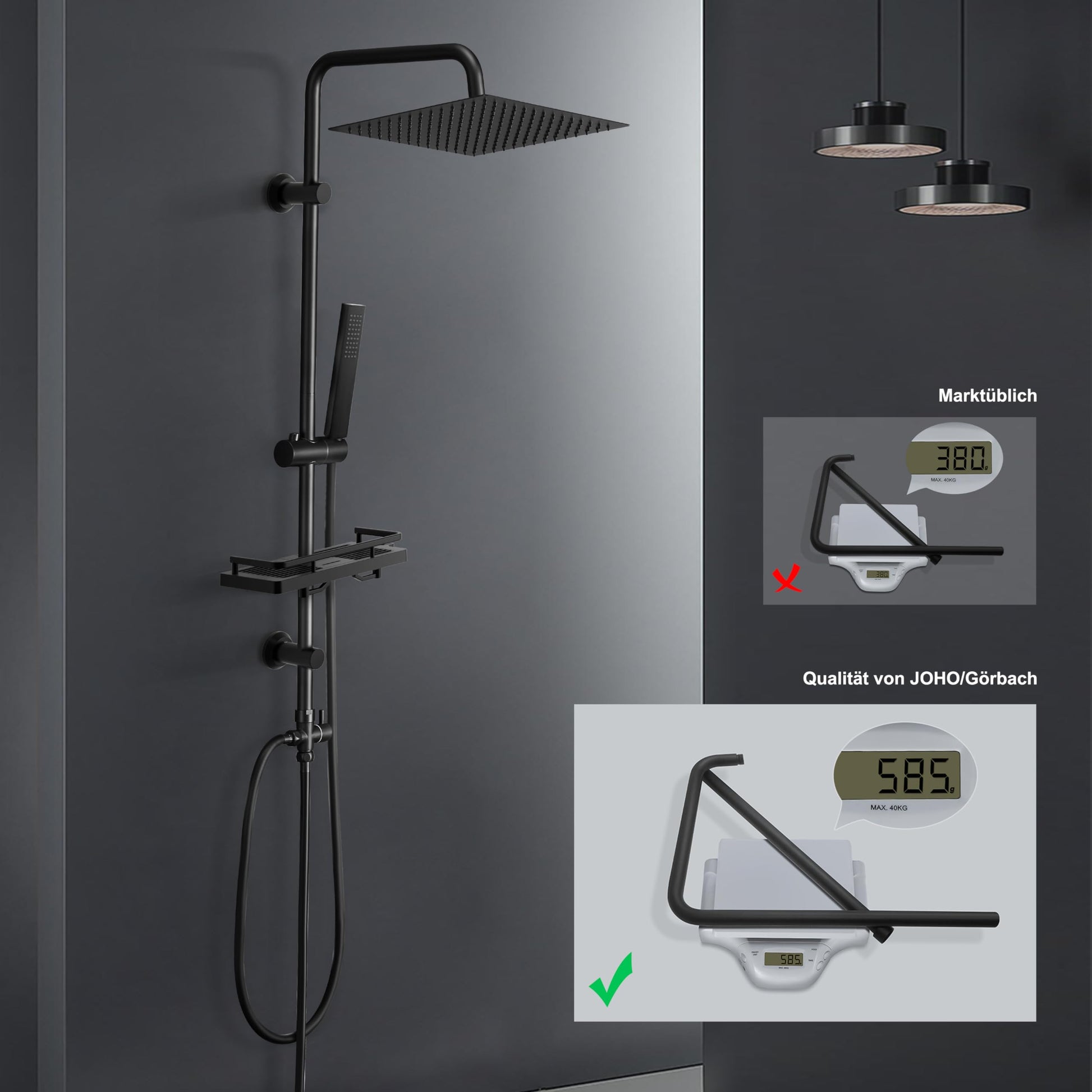 Görbach Regendusche Duschset Edelstahl Schwarz Eckig 20x20cm