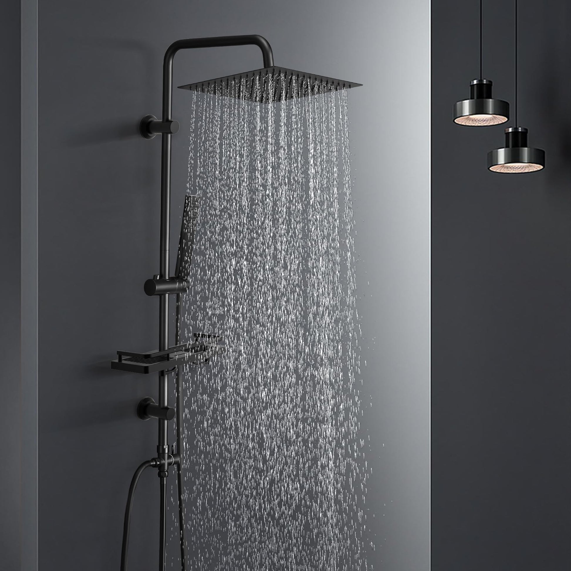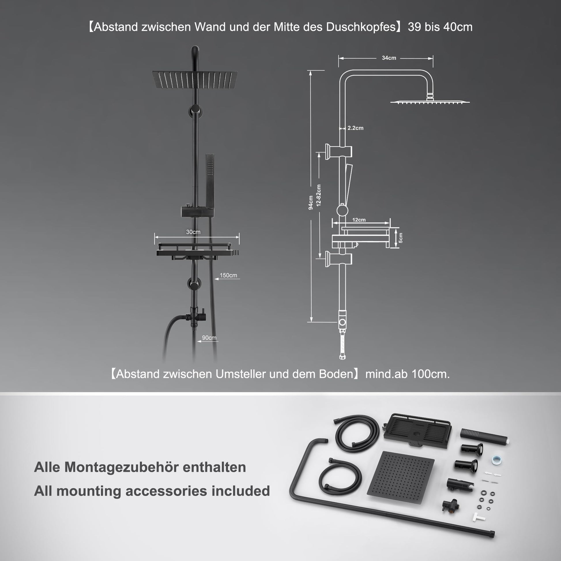 Verwandeln Sie Ihr Badezimmer in eine persönliche Wellness-Oase mit diesem eleganten Duschsystem in Mattschwarz. Es kombiniert ein modernes, klares Design mit hoher Funktionalität und wird bewusst ohne Armatur geliefert, damit Sie es flexibel mit Ihrem bestehenden Thermostat kombinieren können.