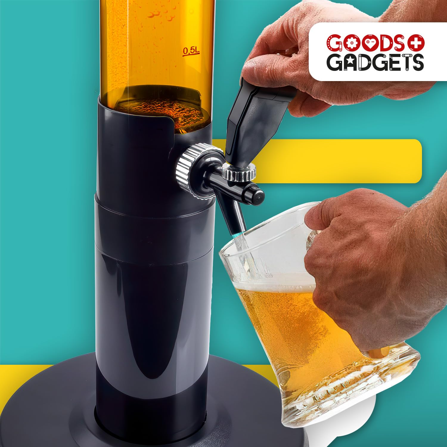 Dieser XXL Getränketower von GOODS+GADGETS ist der ultimative Mittelpunkt für jede Party und Feier. Mit seinem beeindruckenden Fassungsvermögen von 5 Litern stellt er sicher, dass der Getränkenachschub für Ihre Gäste jederzeit gesichert ist.