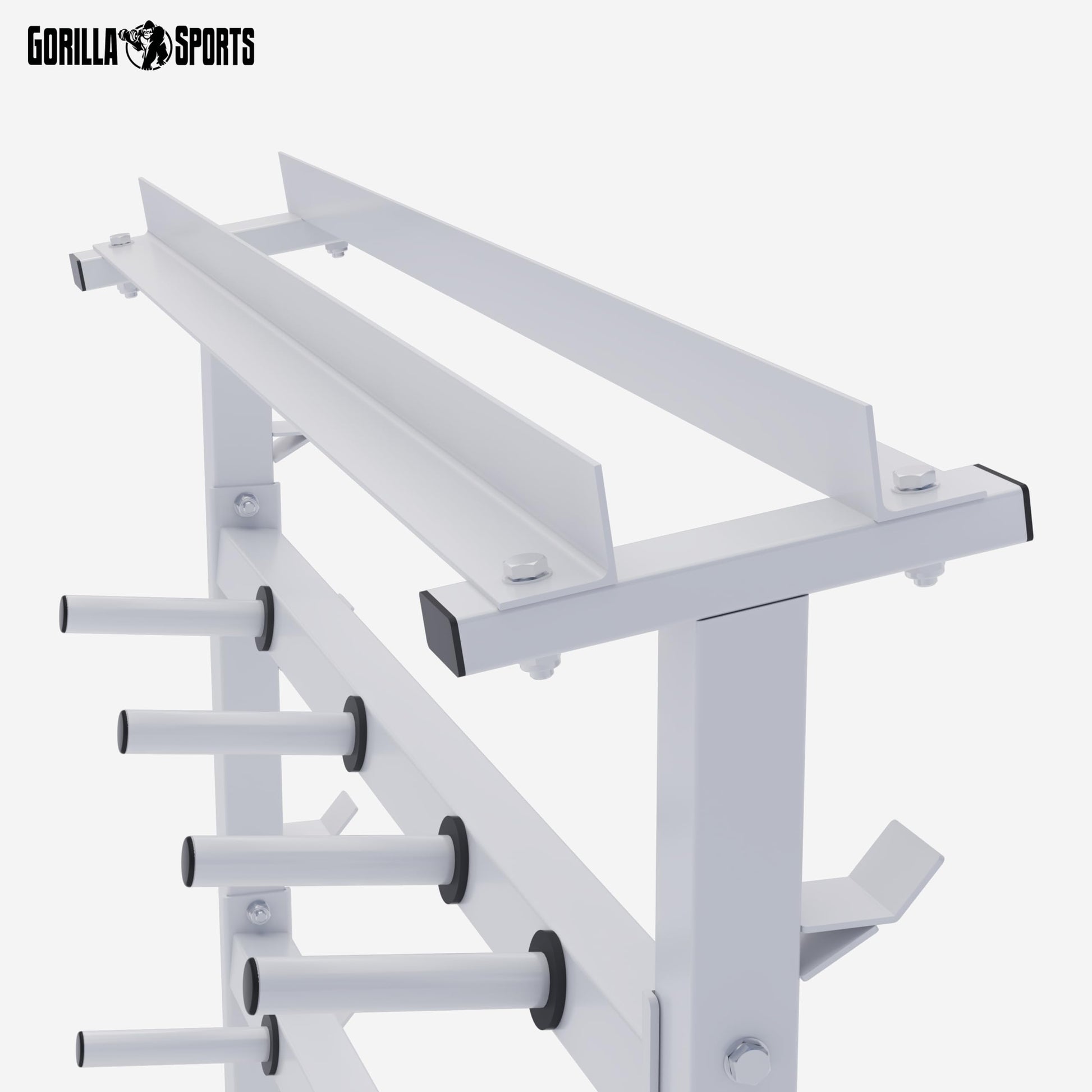 Der Gewichteständer ist für eine maximale Gesamtlast von bis zu 400 kg ausgelegt. Die obere Ablage trägt bis zu 200 kg, und jede der seitlichen Scheibenaufnahmen ist für bis zu 100 kg konzipiert, was ihn extrem robust für Ihr Home-Gym macht.