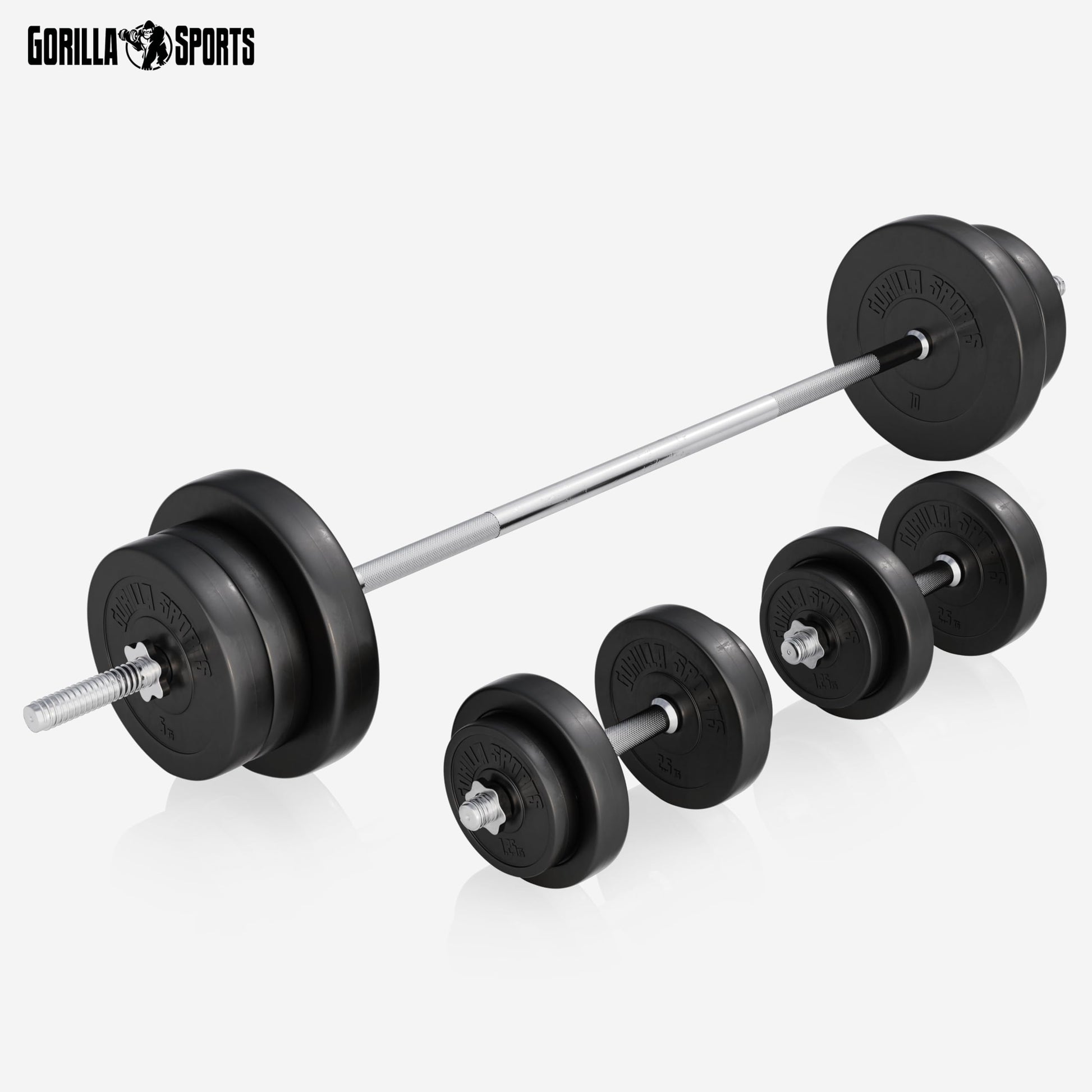 GORILLA SPORTS® Hantelbank mit Langhantelset – Klappbar