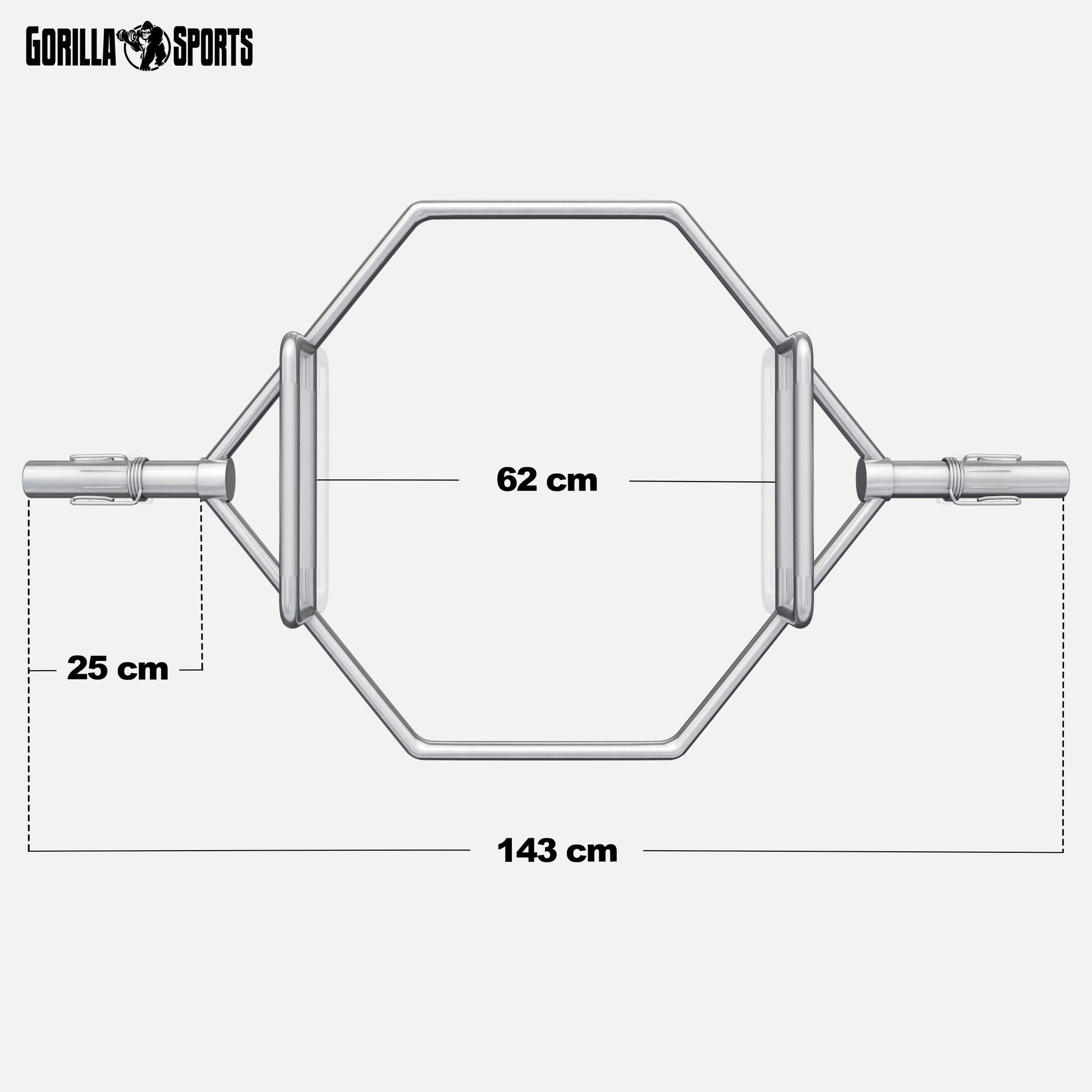 Die verchromte Trap Bar von GORILLA SPORTS® ist das ideale Trainingsgerät für ein effektives und zugleich rückenschonendes Krafttraining. Ihre spezielle Hexagon-Form macht sie zur perfekten Wahl für Athleten aller Niveaus.
