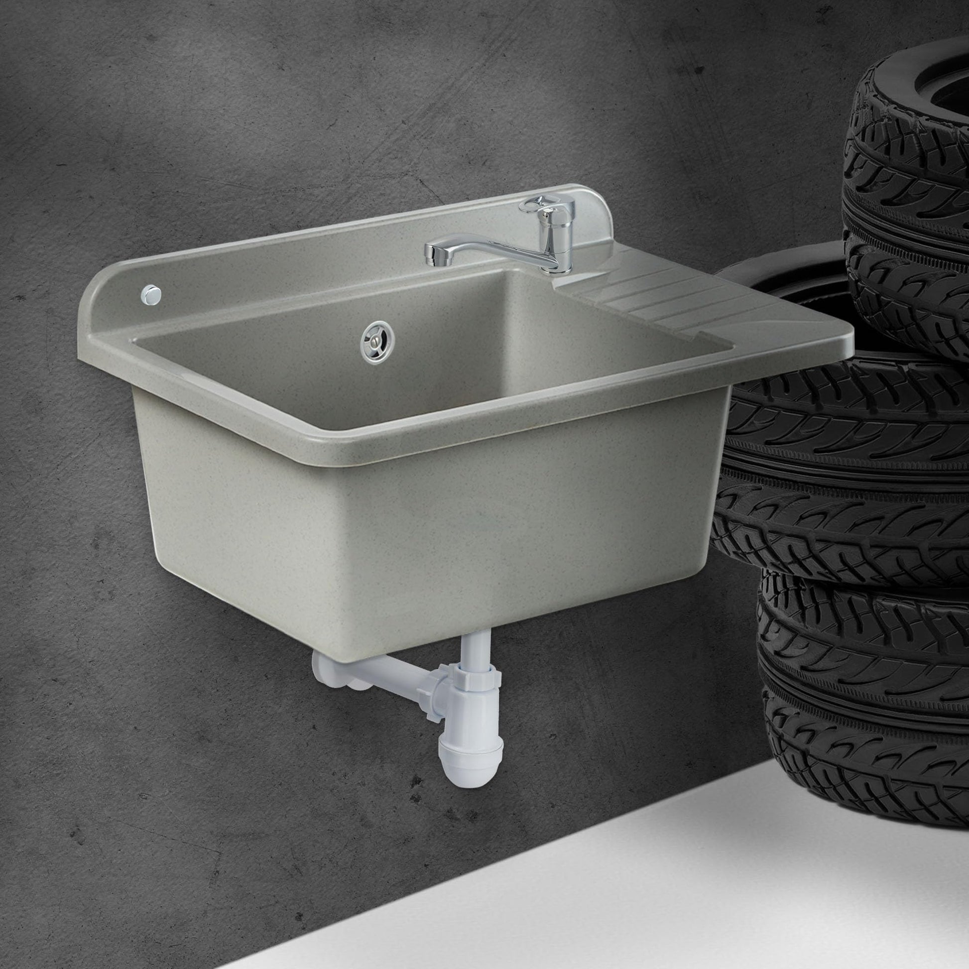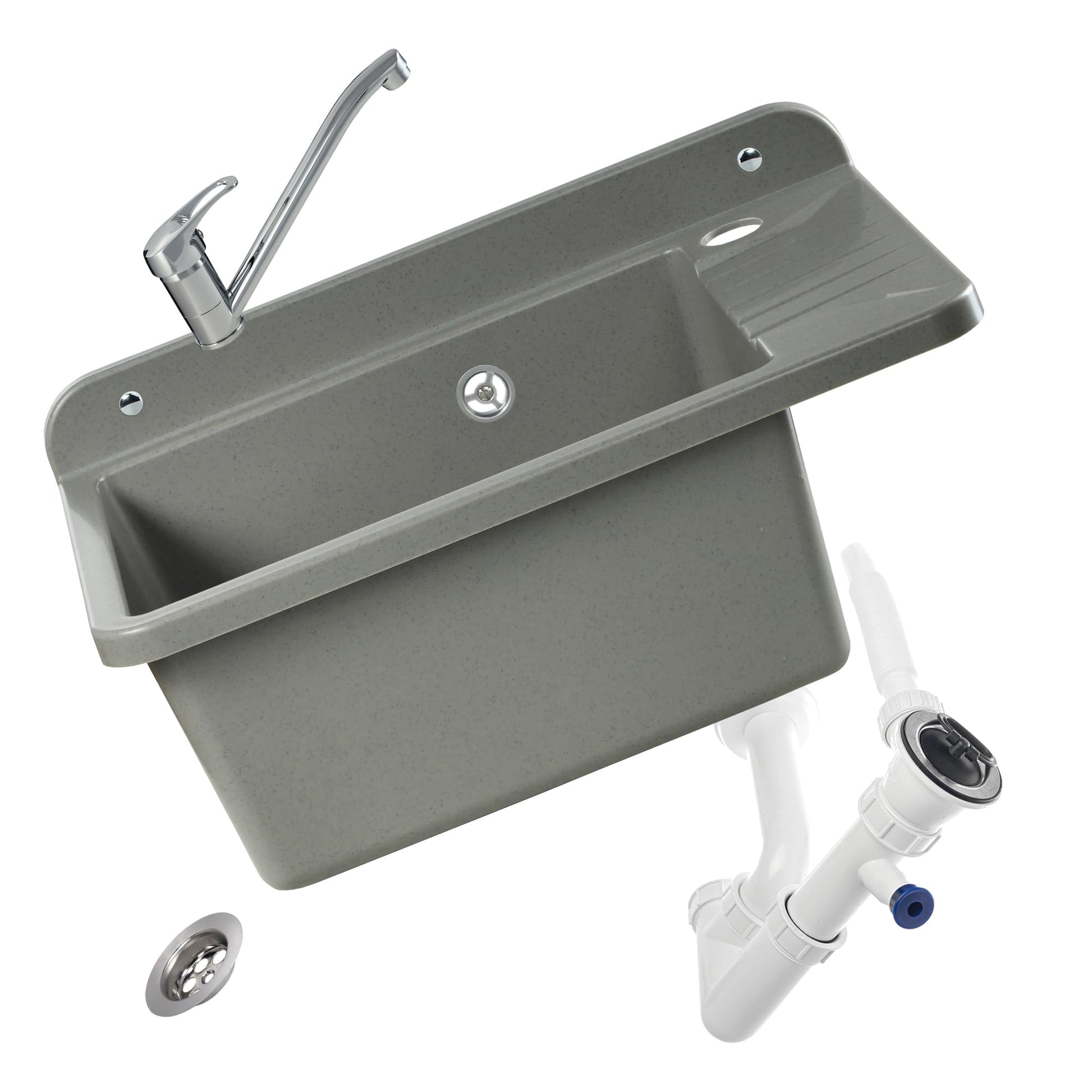 GOSPO Ausgussbecken Polypropylen inkl. Armatur & Siphon - Grau