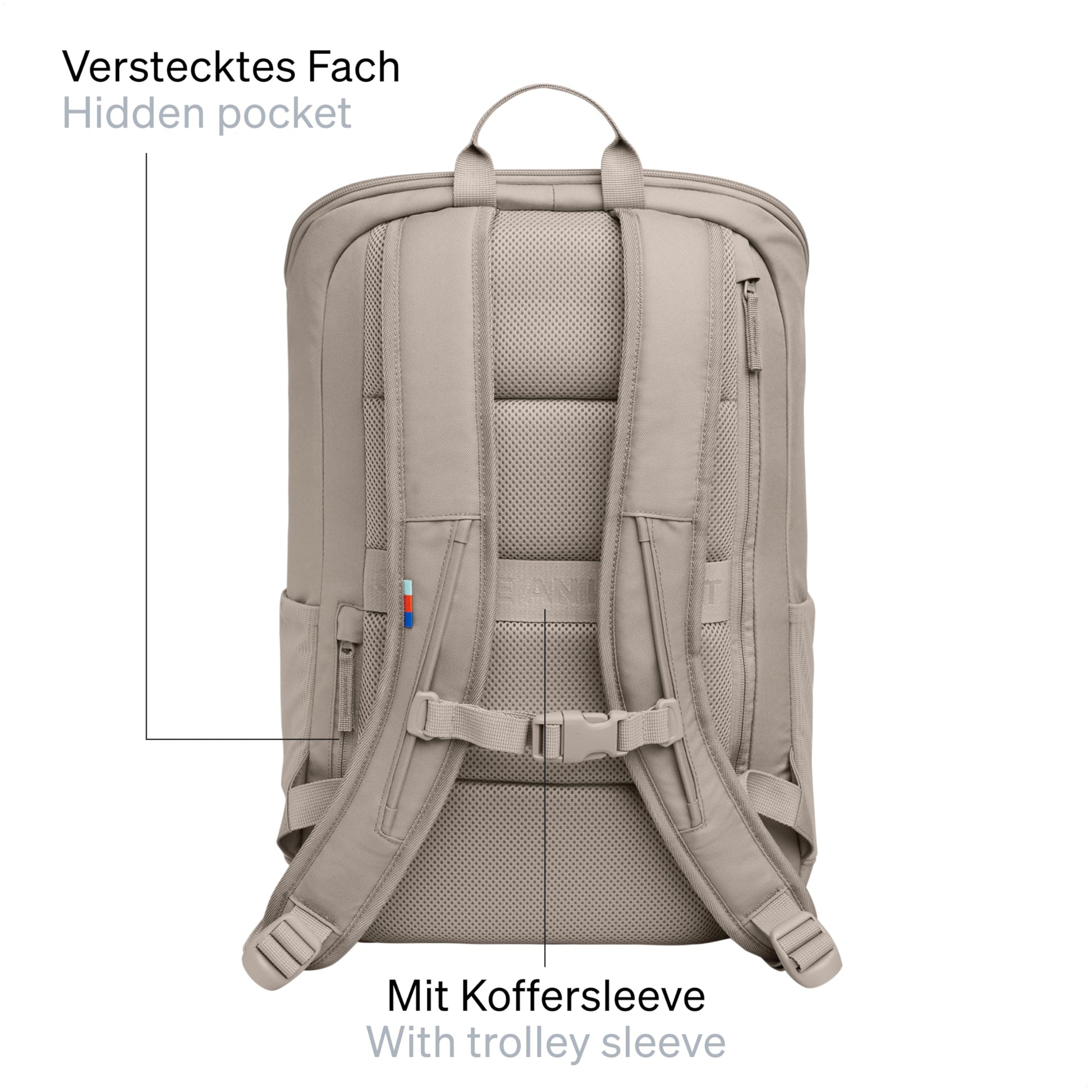 Der Rucksack ist ein wahres Organisationstalent. Er bietet ein separates 16-Zoll-Laptopfach, ein Tabletfach, fünf Einstecktaschen, eine Netztasche für Kleinteile, zwei Fächer für Trinkflaschen sowie ein diskretes Geheimfach für Ihre Wertsachen. So hat alles seinen festen Platz und ist schnell griffbereit.
