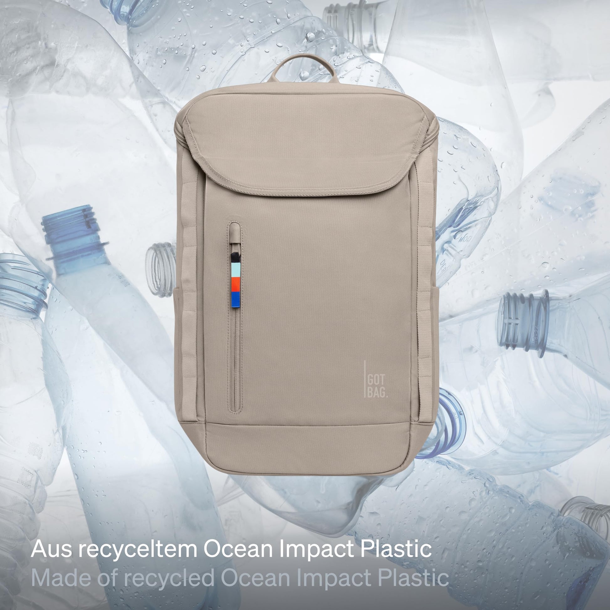 Der Rucksack wird aus recyceltem Ocean Impact Plastic gefertigt, das im Rahmen eines eigenen Clean-Up Programms aus dem Meer und von Küsten gesammelt wird. Damit tragen Sie mit jedem Kauf aktiv zur Säuberung der Ozeane bei. Auch das Innenfutter und die Gurte bestehen aus recycelten Materialien.