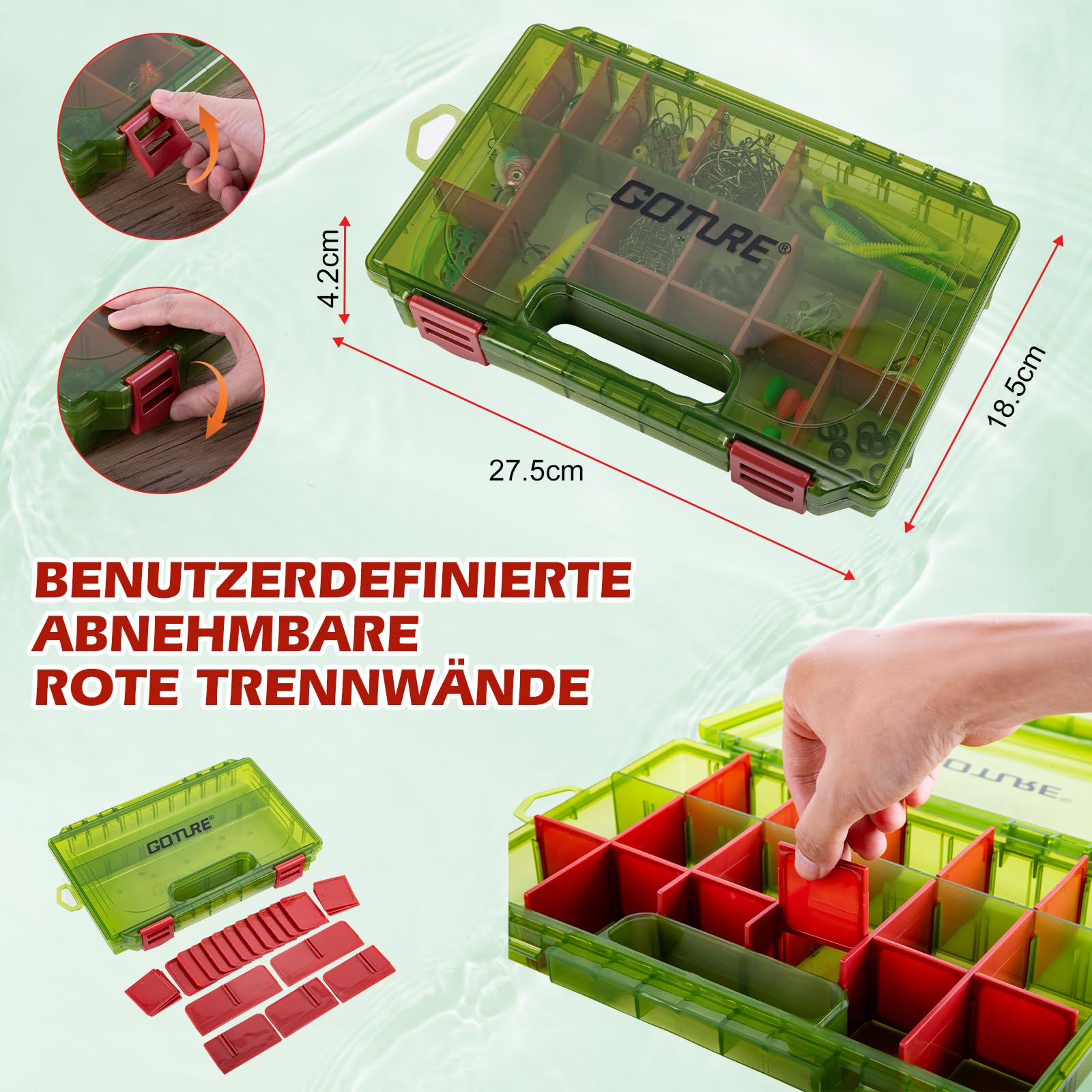 Dank des intelligenten Fachsystems haben Sie Ihre Angelausrüstung stets perfekt organisiert und sofort griffbereit. Das untere Fach ist exakt auf die vier mitgelieferten Köderboxen zugeschnitten, während im oberen Bereich Kleidung, Proviant oder grössere Utensilien Platz finden. Zahlreiche Aussentaschen bieten schnellen Zugriff auf Werkzeuge, Ruten und persönliches Zubehör.