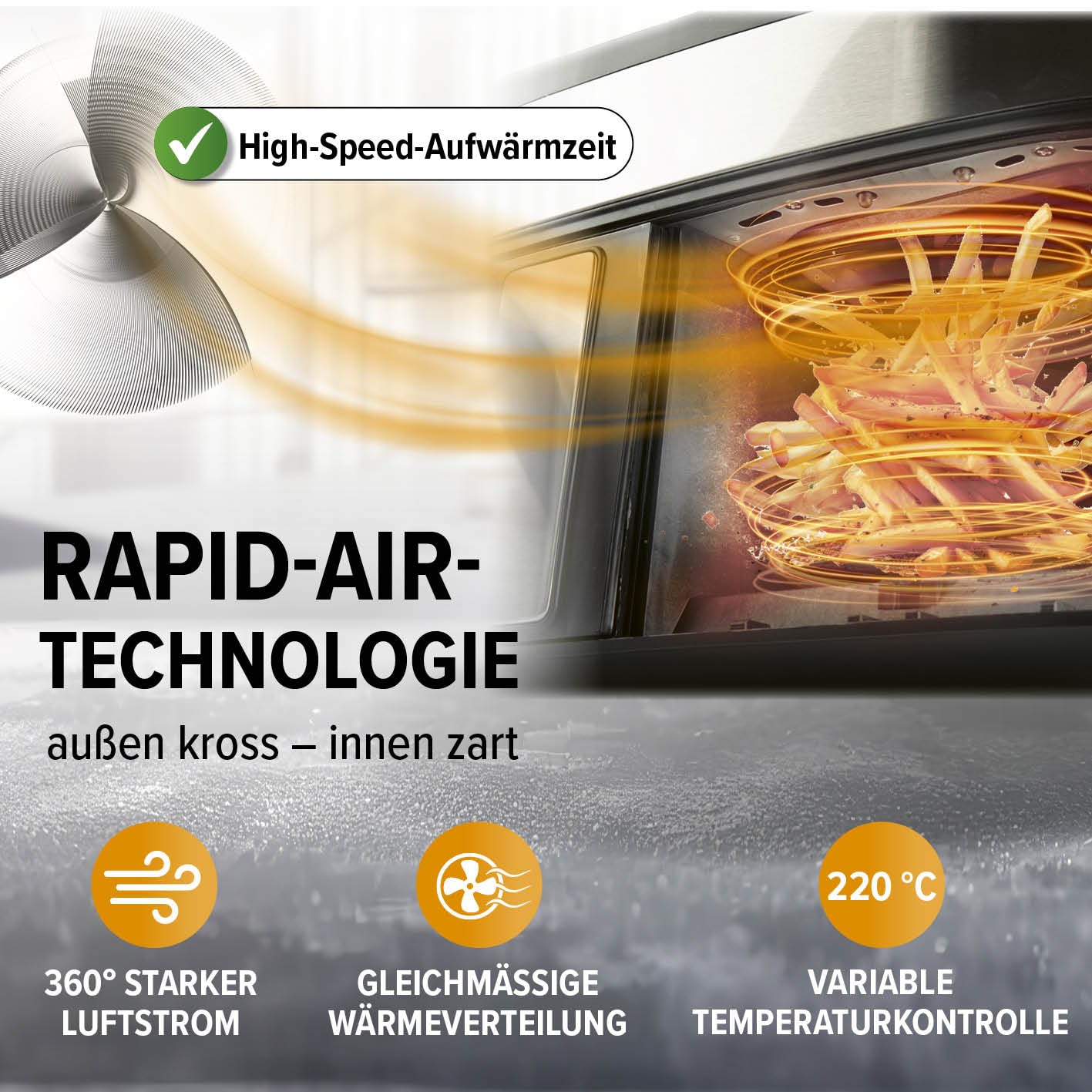 - Leistungsstarke Technologie: 2400 Watt kombiniert mit 360°-Rapid-Air-Technologie für eine optimale Wärmeverteilung.
