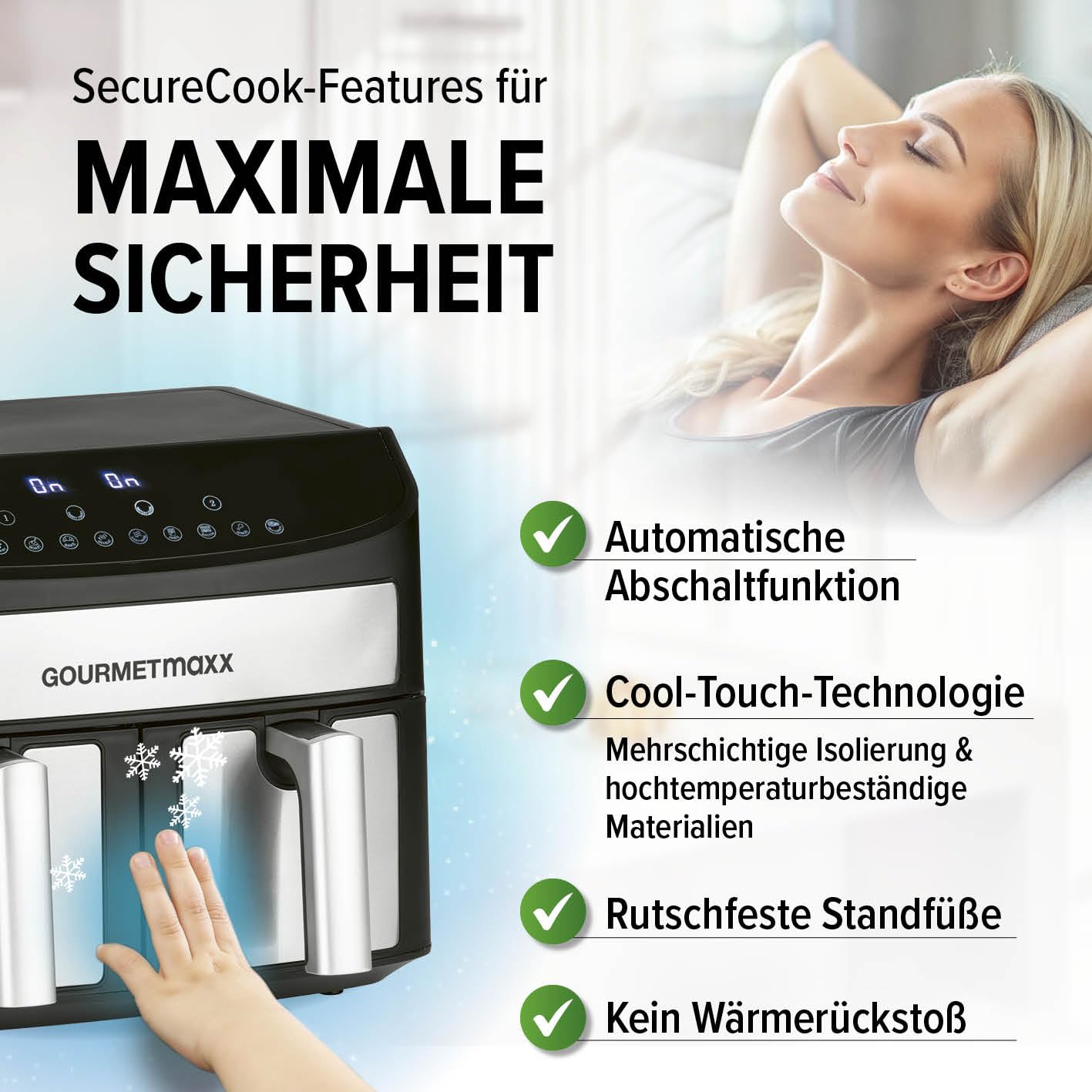 GOURMETmaxx Doppelkammer-Heissluftfritteuse - 2x 3.5L Edelstahl