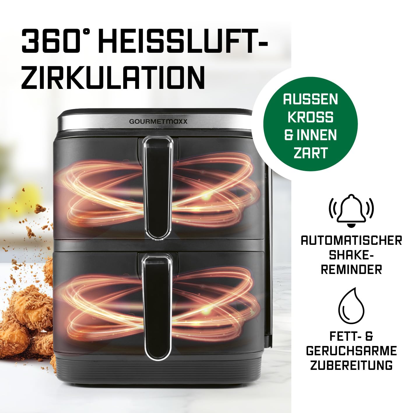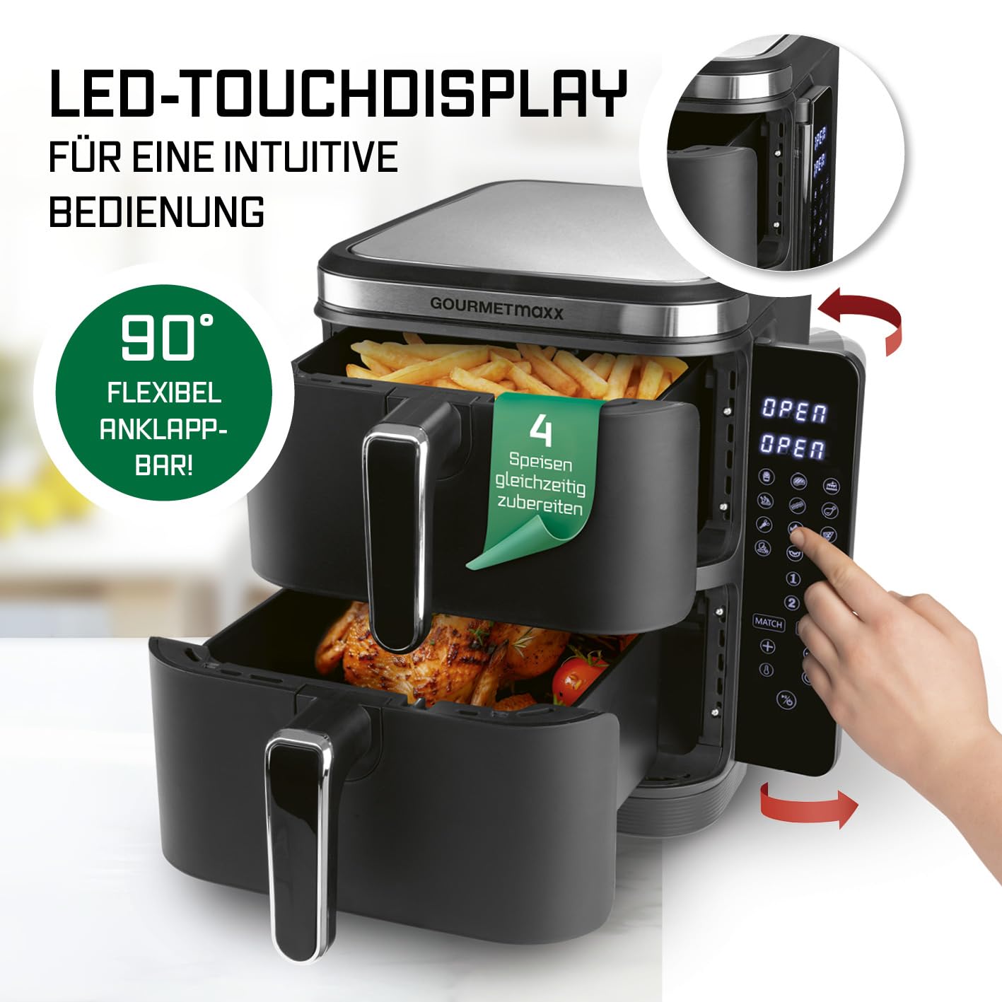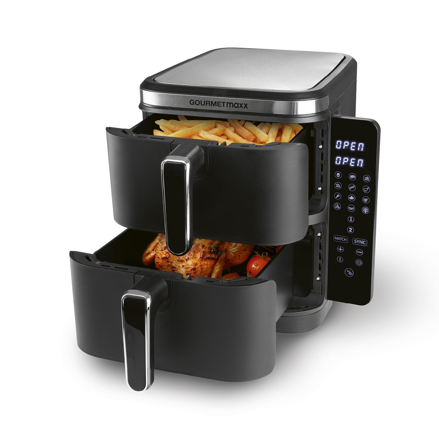 GOURMETmaxx FryUp Vertikale Doppelkammer Heissluftfritteuse 10L